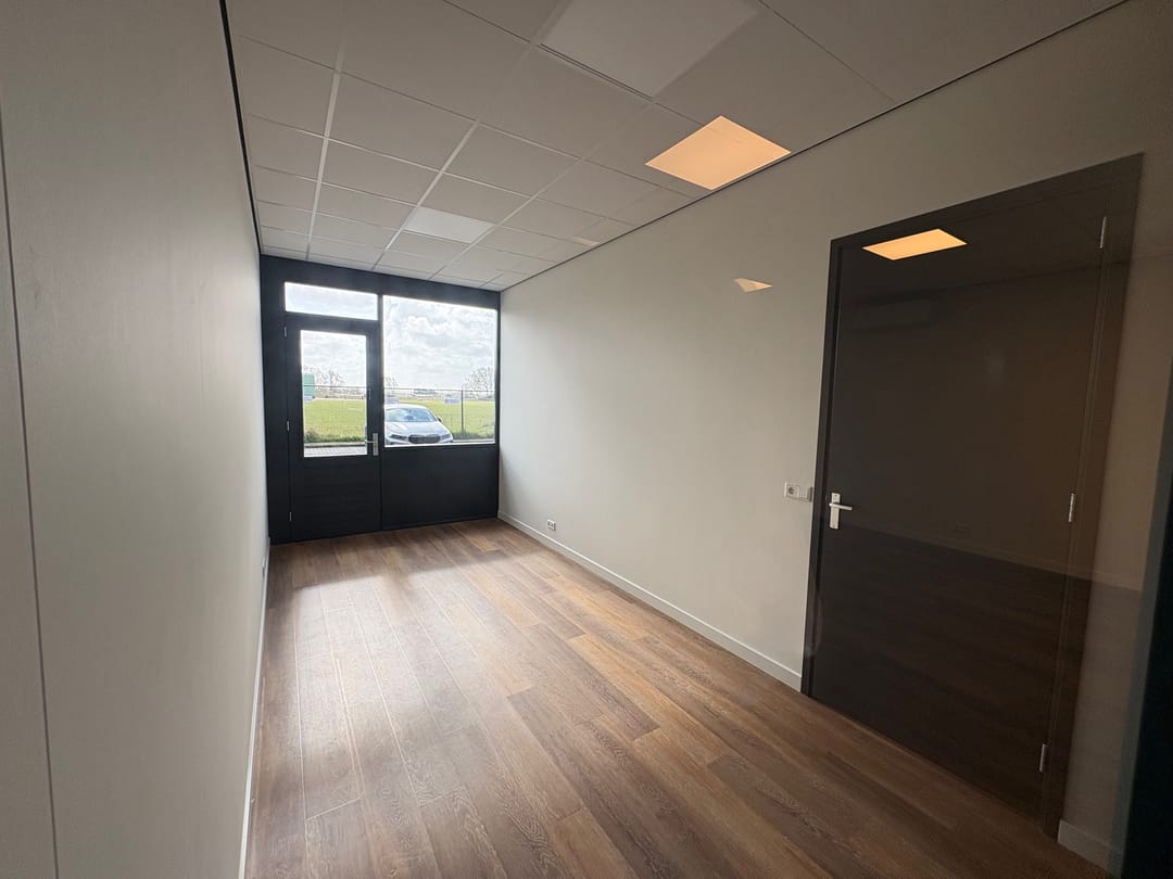 De voormalige bedrijfshal is voorzien van een elektrische overheaddeur en een toiletruimte, en ingericht met 3 ruime praktijk/kantoorruimten met een open gevelkozijn met glas en een aparte toegangsdeur.