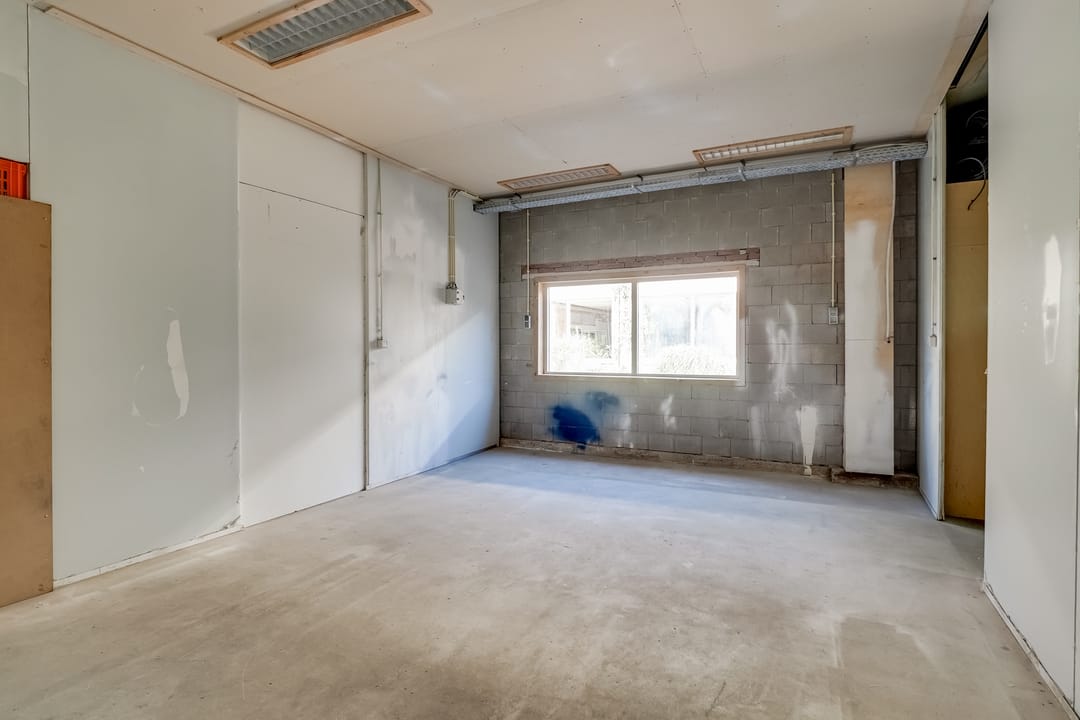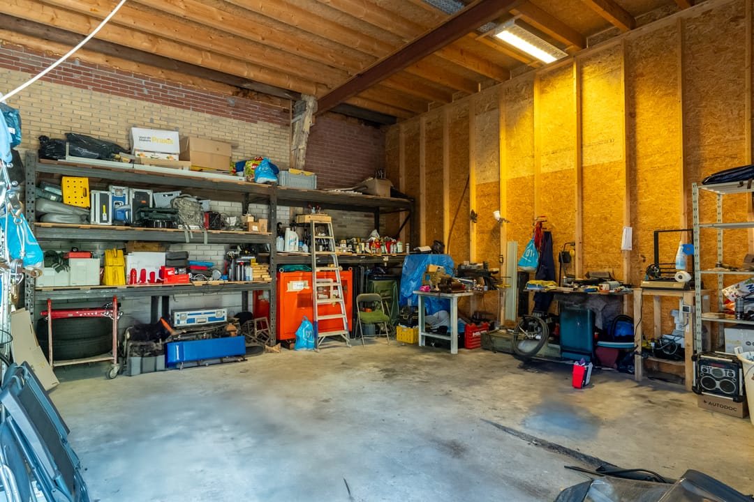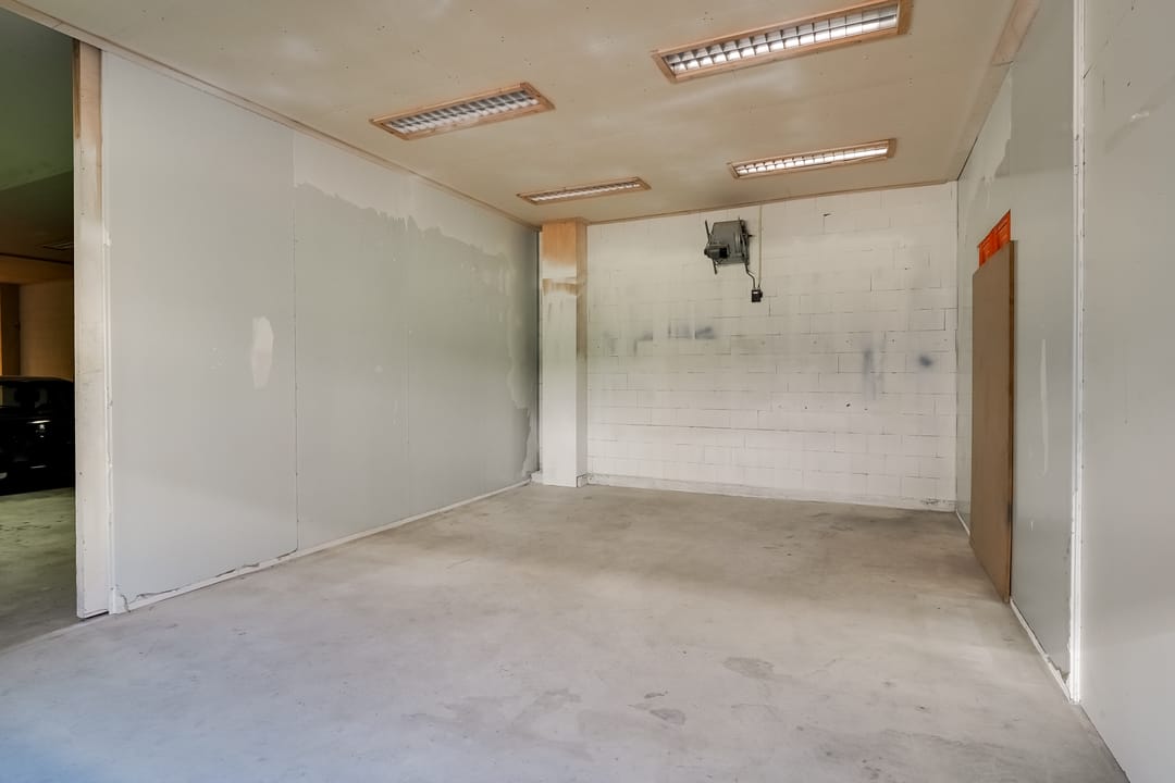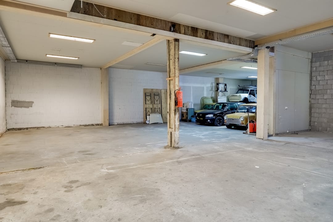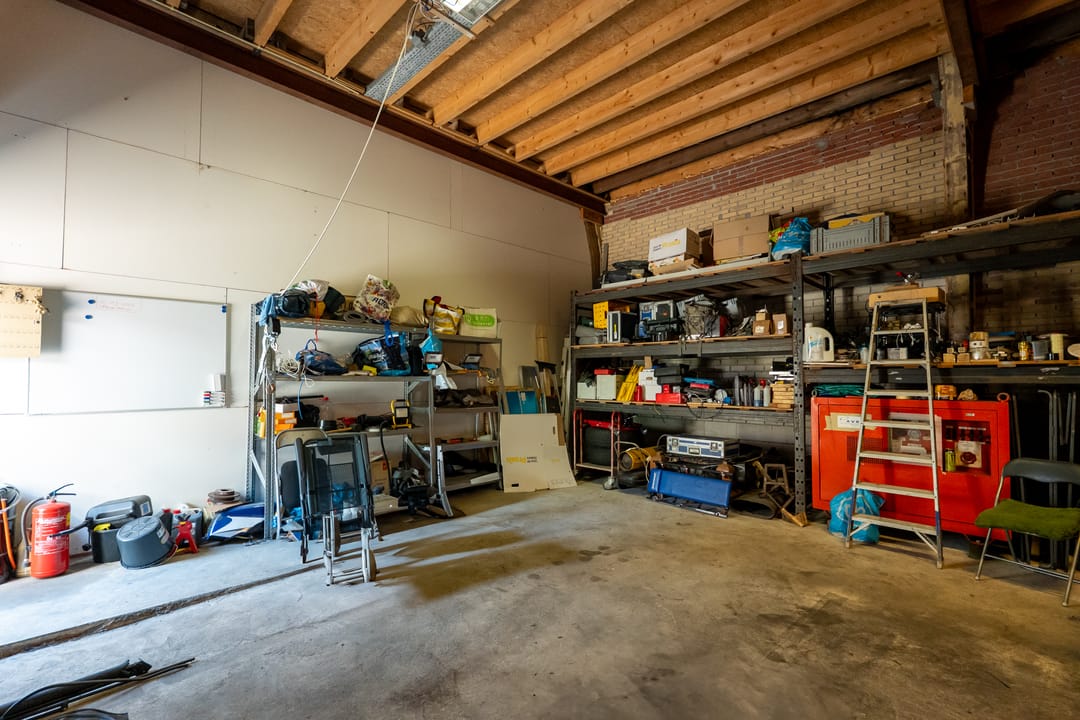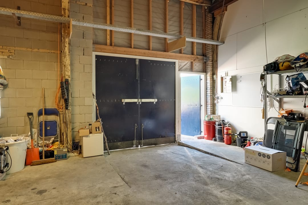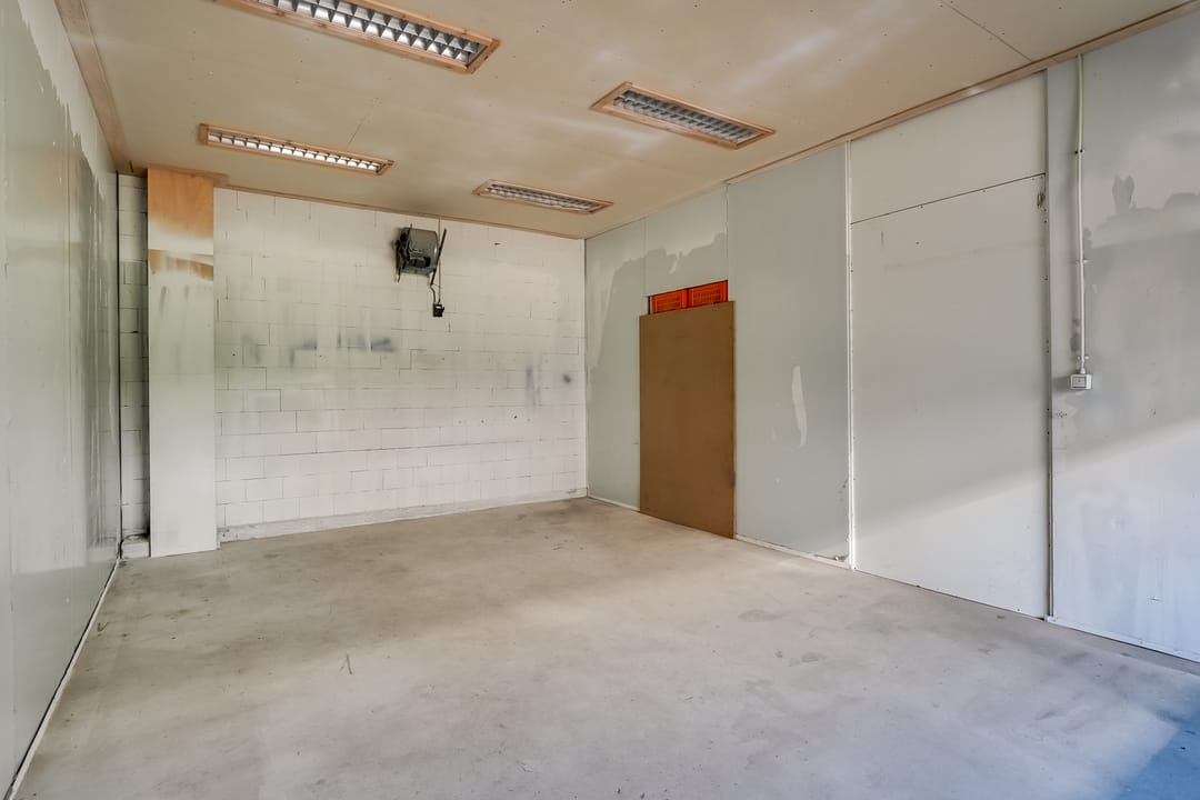 - Overheaddeuren, krachtstroom, betonvloer, toilet, pantry, mechanische ventilatie, inbouwarmaturen en te openen ramen