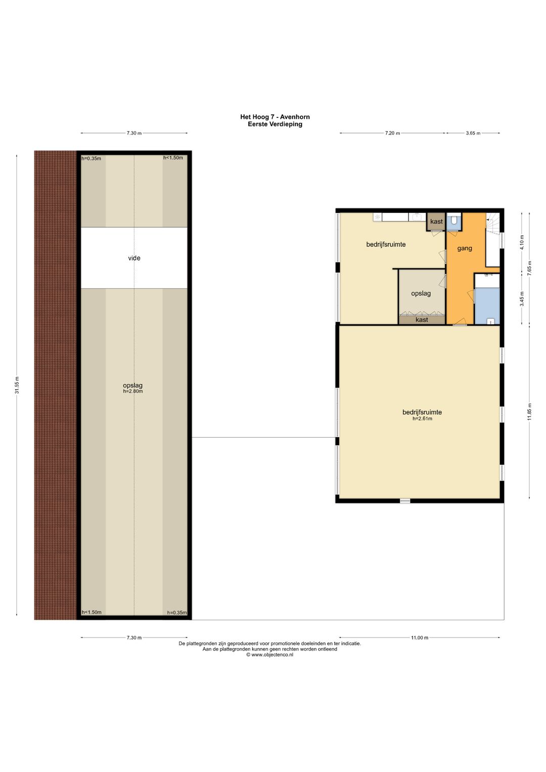 - Zolderverdieping: circa 200 m² BVO eenvoudige opslagruimte