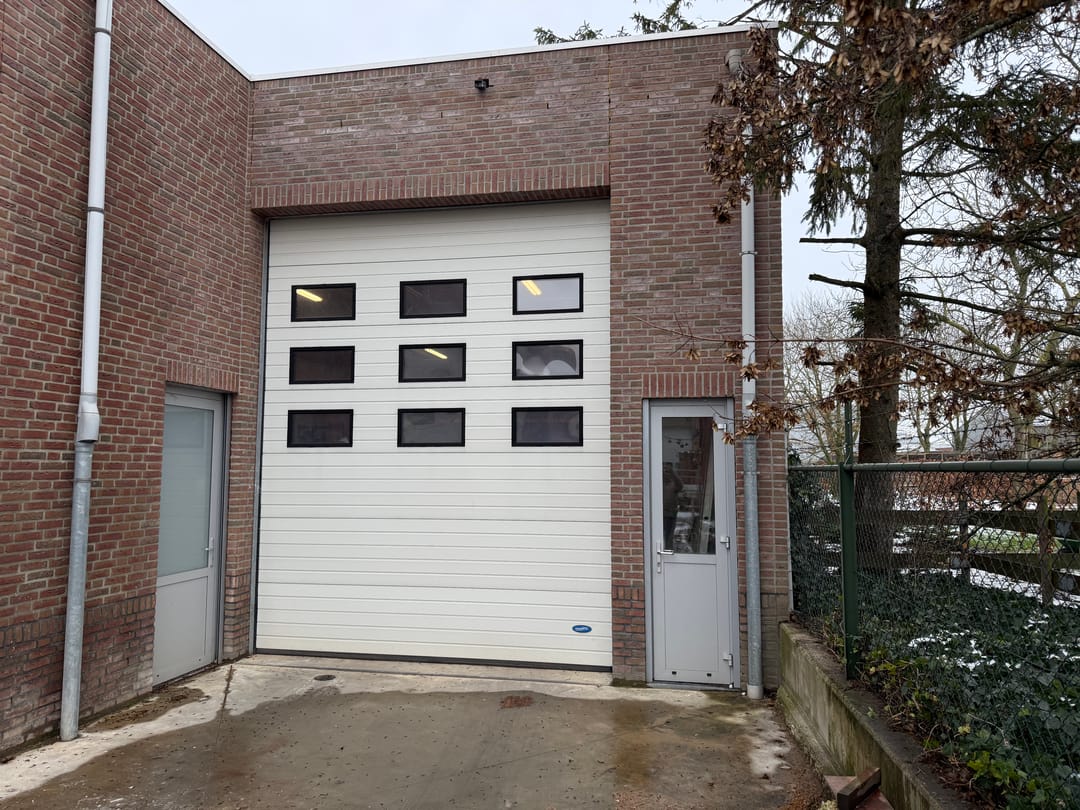 Aan de achterzijde bevinden zich eveneens nog een grote rolpoort tevens met een doorrijhoogte van 4,25 meter met daarnaast een aparte loopdeur.