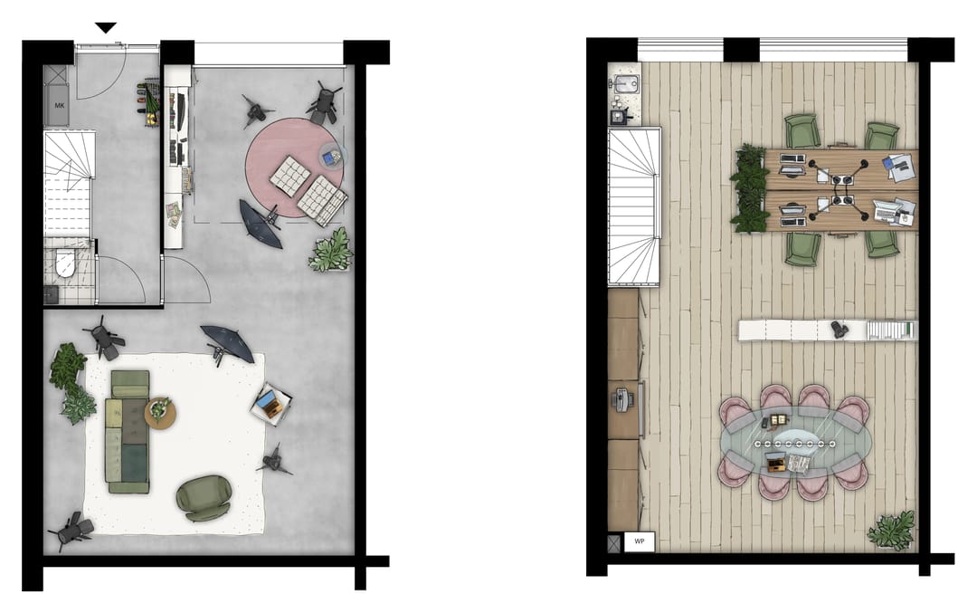 Natuurlijk ben je helemaal vrij om -binnen de kaders van het vigerende bestemmingsplan- je unit naar eigen wens in te delen en af te werken.