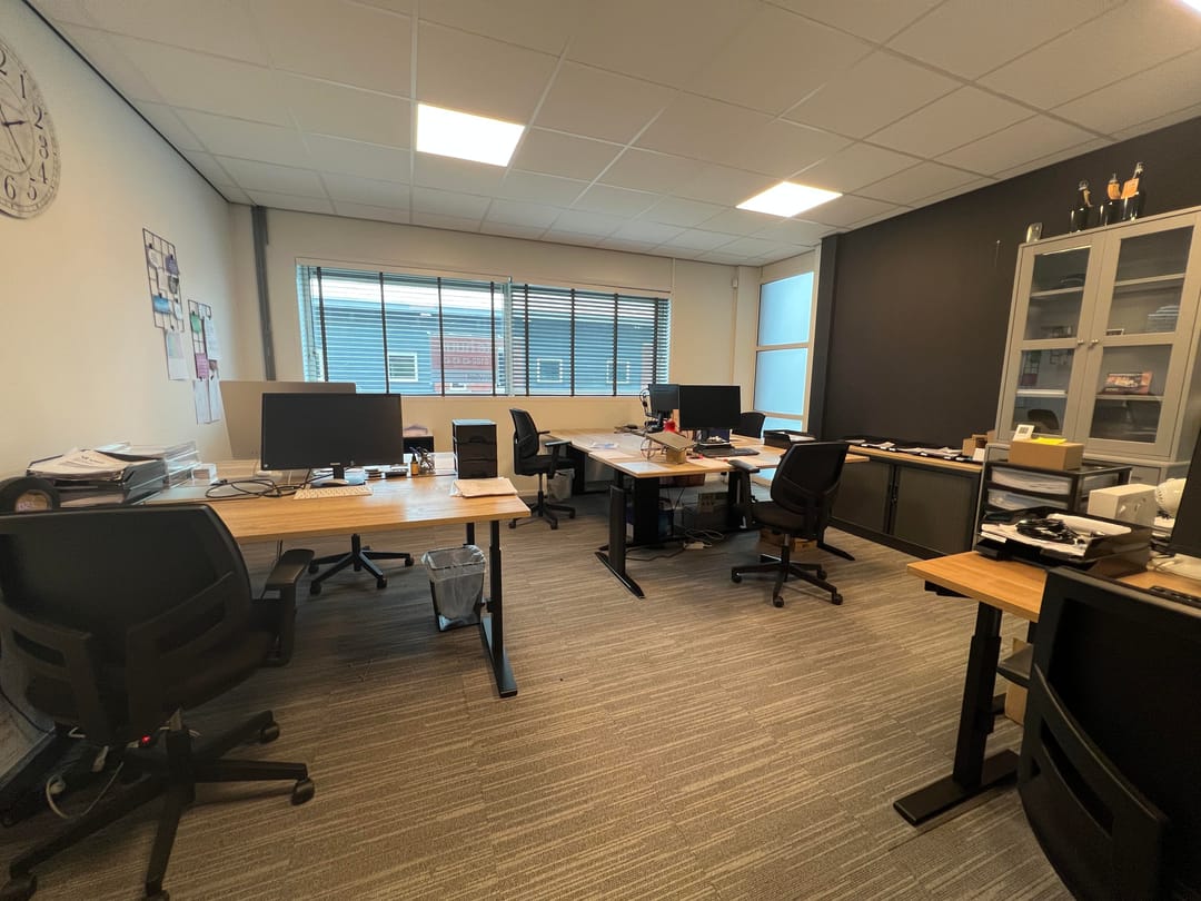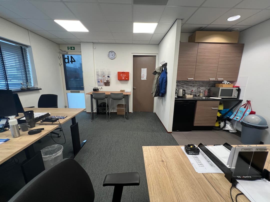 Het kantoor is compleet afgewerkt met o.a. LED verlichting, een pantry met en elektrische verwarming.
