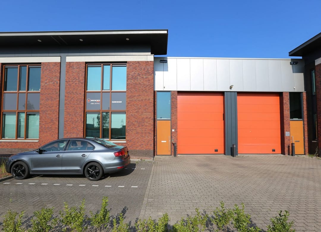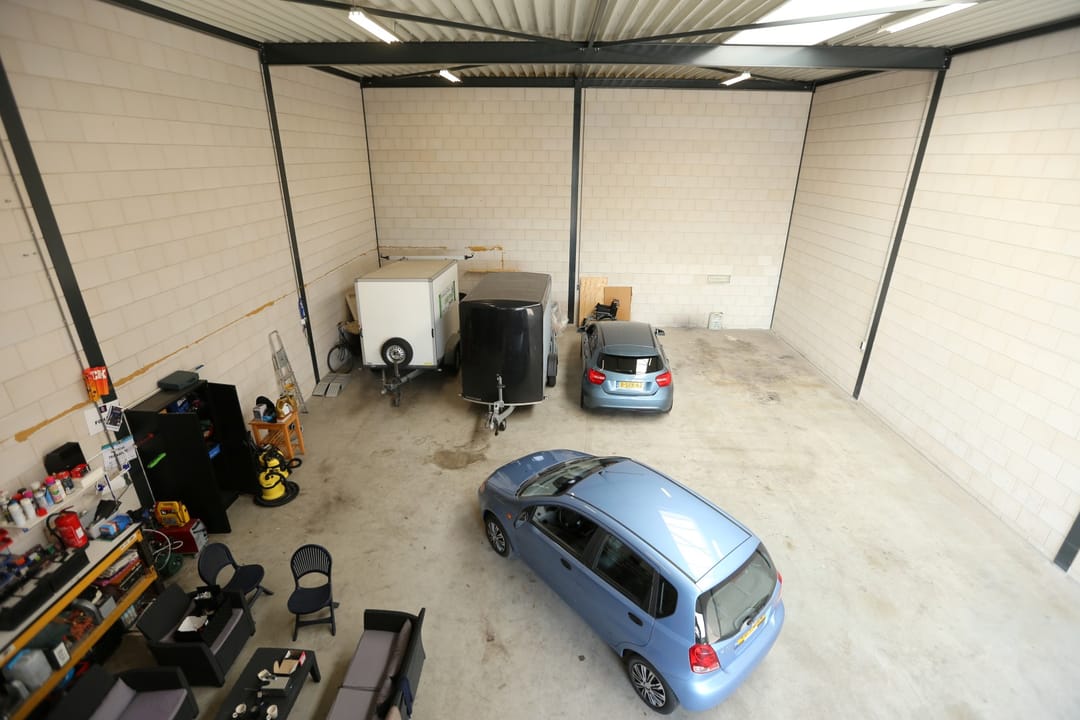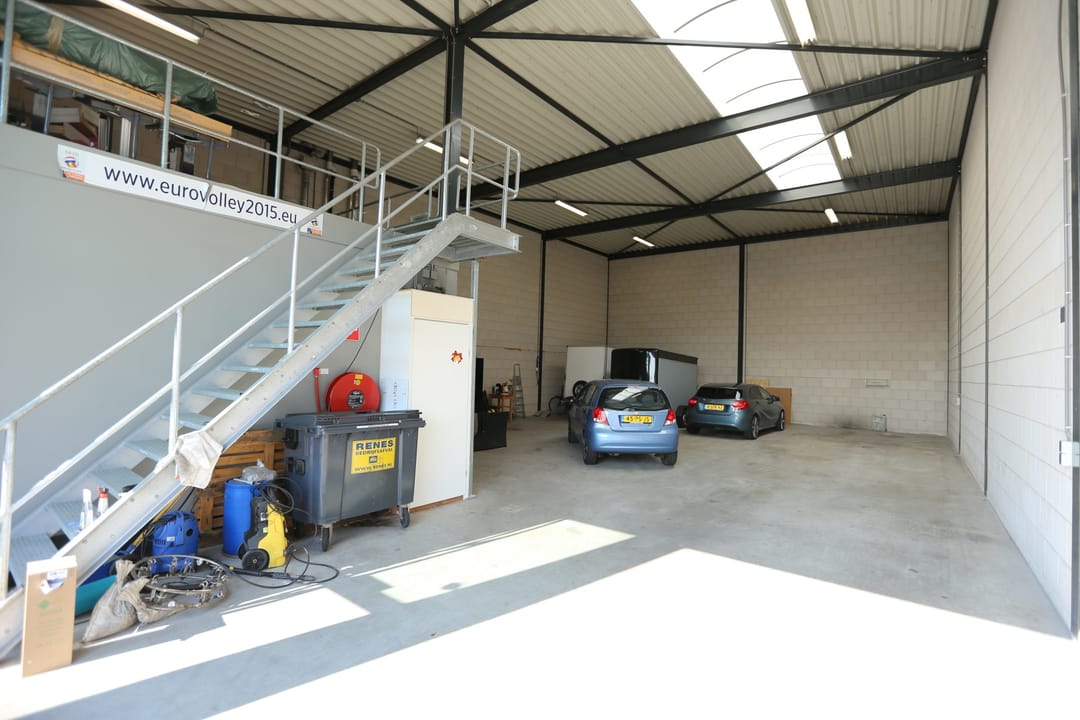 - Lichtstraten, overheaddeuren, betonvloer, heater, toilet, pantry en inbouwarmaturen