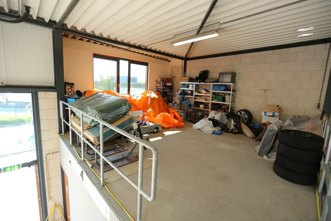 - betonnen entresolvloer (boven het kantoor) met stalen trapopgang en valbeveiliging.