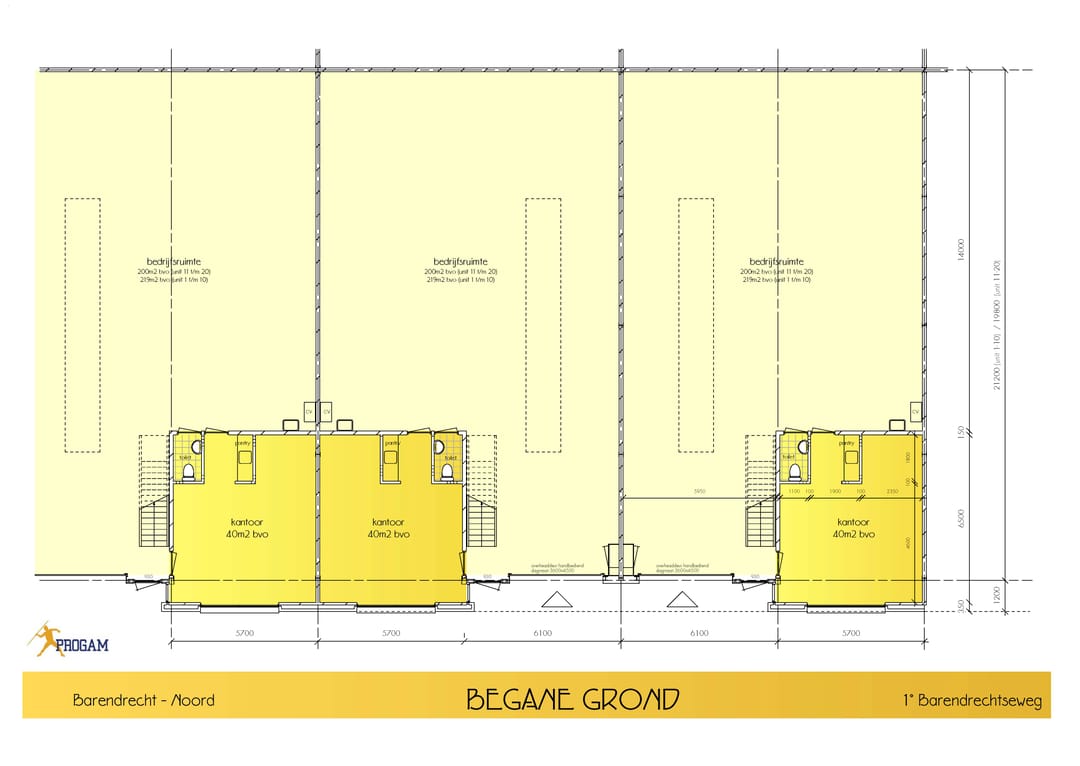 - indeling begane grond: één kantoorcompartiment, pantry en doorgang naar de bedrijfsruimte;