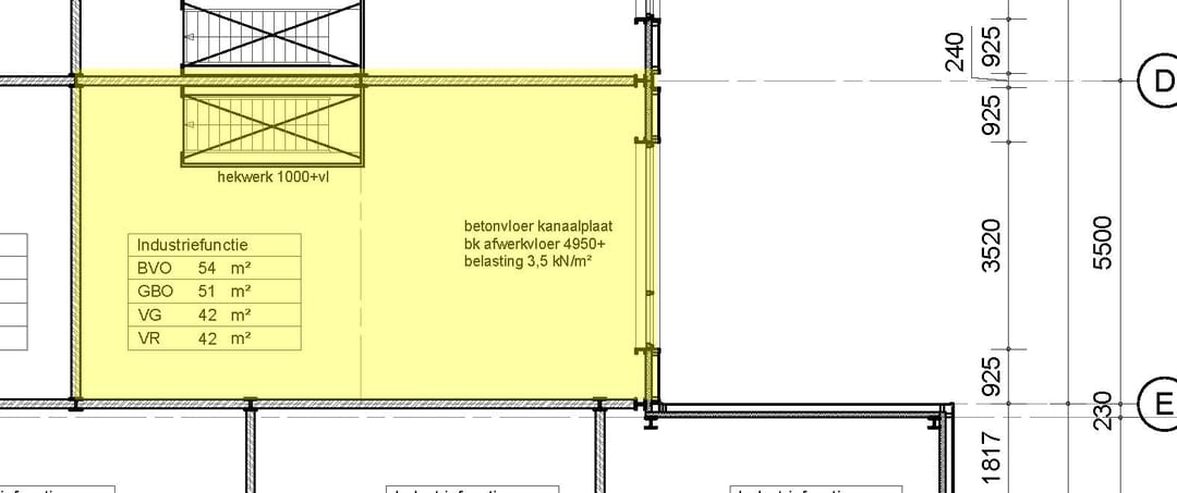 - monoliet afgewerkte betonvloer met een maximale vloerbelasting van 1.000 kg/m²;