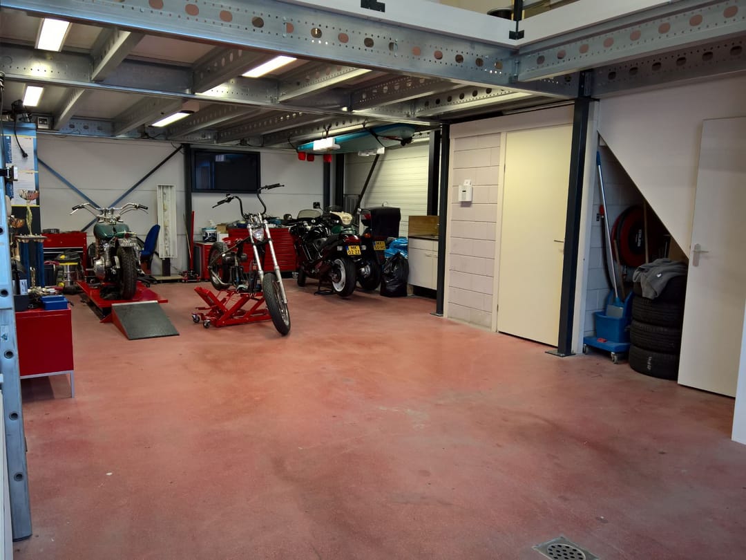- Lichtstraten, overheaddeuren, betonvloer, toilet, pantry, inbouwarmaturen en te openen ramen