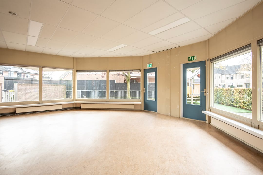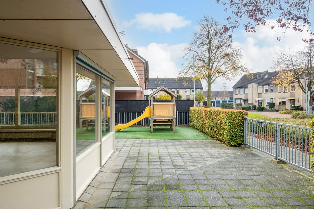 De beschikbare ruimte heeft een vloeroppervlakte van circa 97 m² en 120 m² buitenterrein en het geheel is gelegen op een ruim perceel met een afgesloten buitenspeelterrein, voorzien van veilige ondergrond en speeltoestellen.