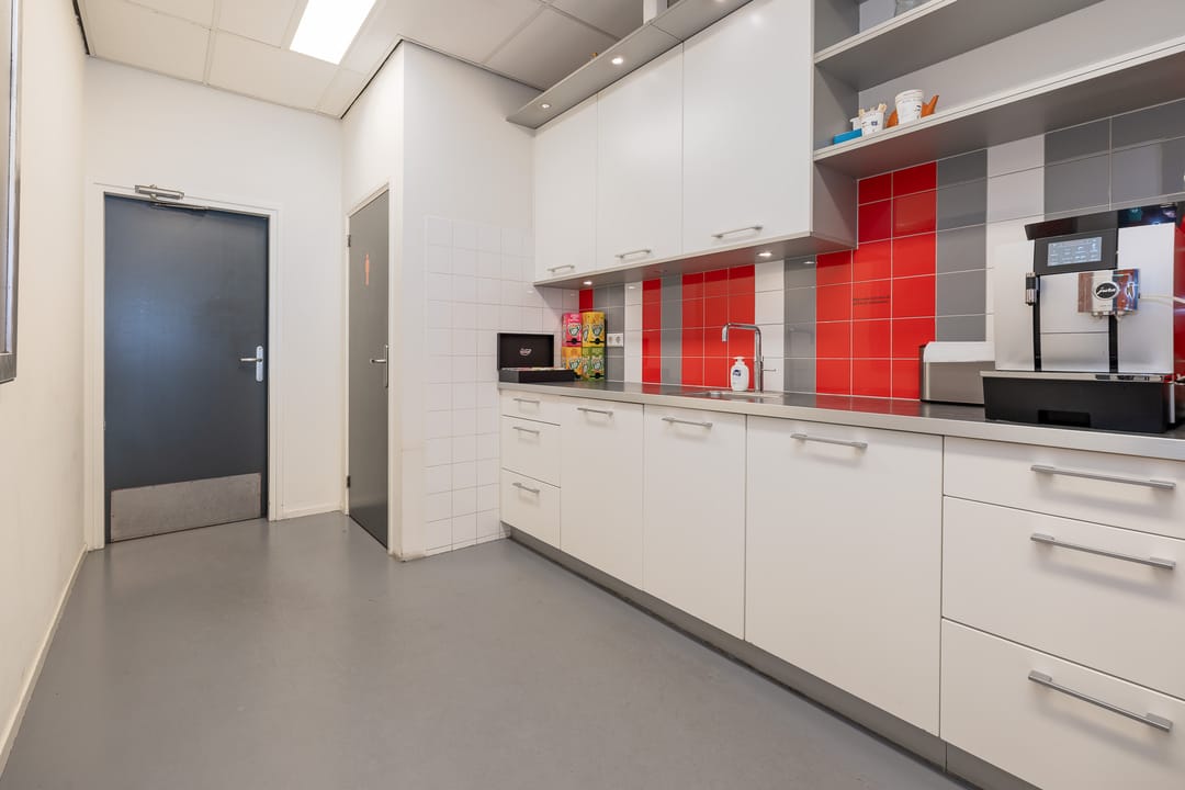 • Kantoorruimte: Draai-/kiepramen, 12 airco units, radiatoren, toiletgroep(en), keuken (begane grond) met vaatwasser, koelkast en Quooker, kantine incl. keuken (verdieping) met vaatwasser, koelkast met koel-/vriescombinatie en Quooker.