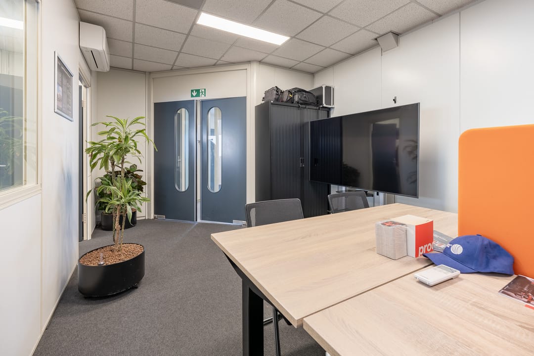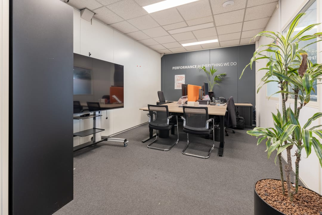 - Airconditioning, lichtstraten, overheaddeuren, krachtstroom, betonvloer, toilet, pantry en te openen ramen