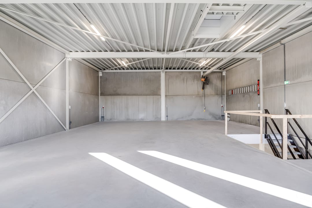 De verdieping biedt extra vloeroppervlakte, heeft een vrije hoogte van circa 3,9 meter en kan flexibel worden ingericht als opslag-, werk- of kantoorruimte. De te openen raampartijen zorgen voor natuurlijke ventilatie en voldoende daglichttoetreding, wat bij draagt aan een prettig binnenklimaat. De aanwezige elektrische lier met een capaciteit van circa 500 kg maakt het eenvoudig om goederen efficiënt te kunnen stallen op de eerste verdieping. In geval van verhuur is de verhuurder bereid kantoorruimte te realiseren op de eerste verdieping.