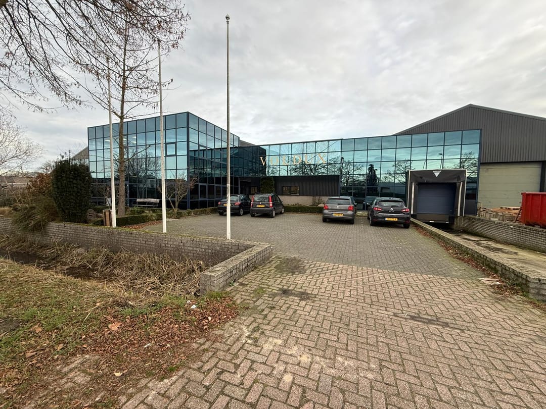 Aan de achterzijde zijn de bedrijfshallen over de gehele breedte van een overkapping van ca. 6 m¹ en diverse toegangsdeuren voorzien. De overkapping beschikt over een totale oppervlakte van ca. 300 m² (welke oppervlakte niet in de totale oppervlakte is meegenomen). Het representatieve bedrijfsobject is, mede dankzij de combinatie van ruime magazijnfaciliteiten en bijbehorende kantoorvoorzieningen, geschikt voor uiteenlopende bedrijfsactiviteiten zoals productie, opslag en/of groothandel. Zelfs perifere detailhandel is onder voorwaarden toegestaan.