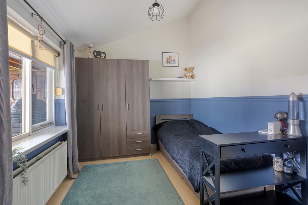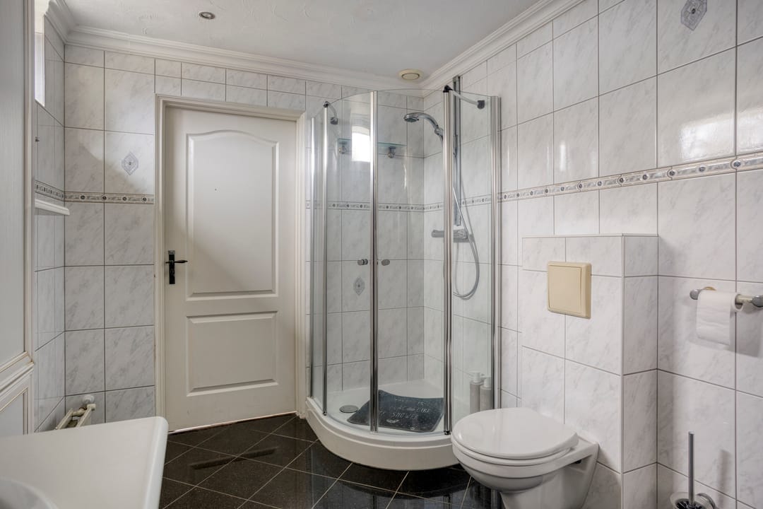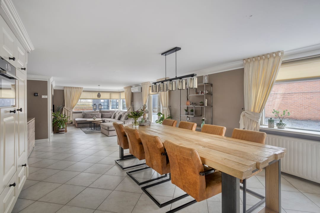 De royale woonkamer en open woonkeuken vormen het hart van het huis. Dankzij de grote raampartijen aan de voor- en zijkant geniet u hier van een overvloed aan natuurlijk licht. De dubbele tuindeuren versterken het binnen-buitengevoel en zorgen voor een fijne verbinding met de buitenruimte.