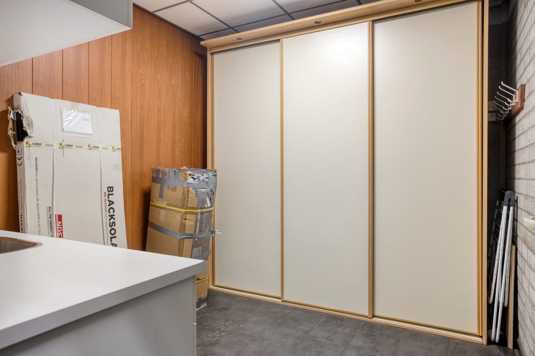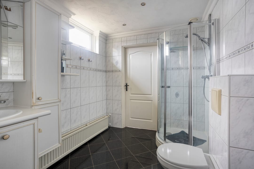 Via de keuken bereikt u een extra entree met aansluitingen voor wasmachine en droger en de HR-ketel (vervangen in december 2023). Vanuit deze ruimte zijn tevens de derde slaapkamer en de ruime badkamer bereikbaar.