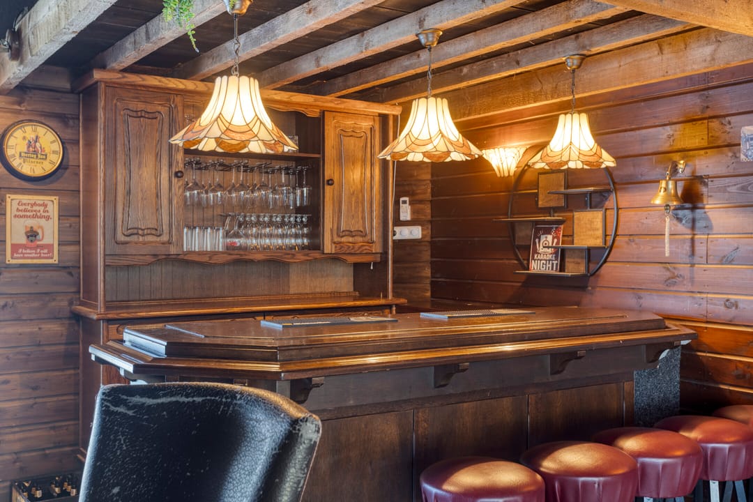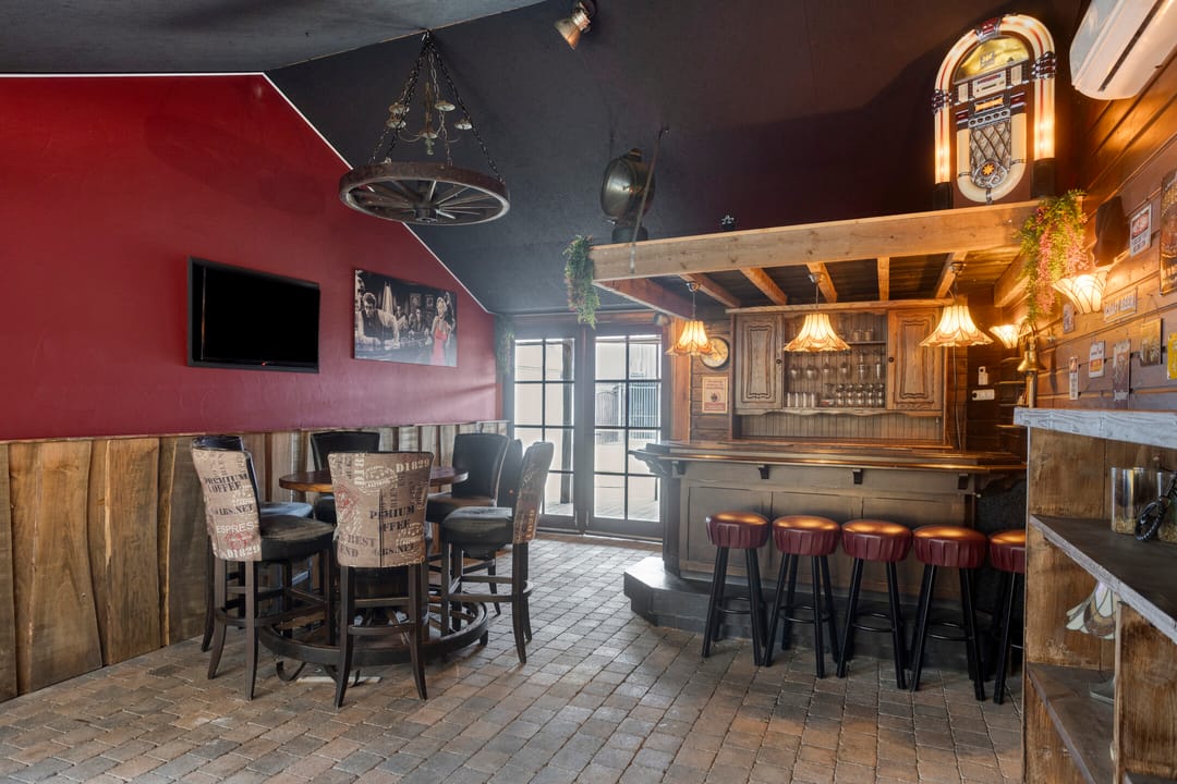 • Een afgesloten buitenruimte, momenteel ingericht als bar