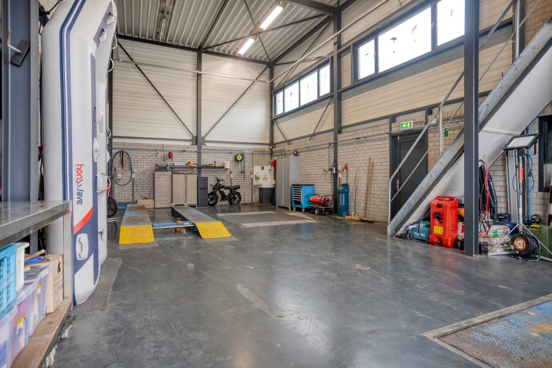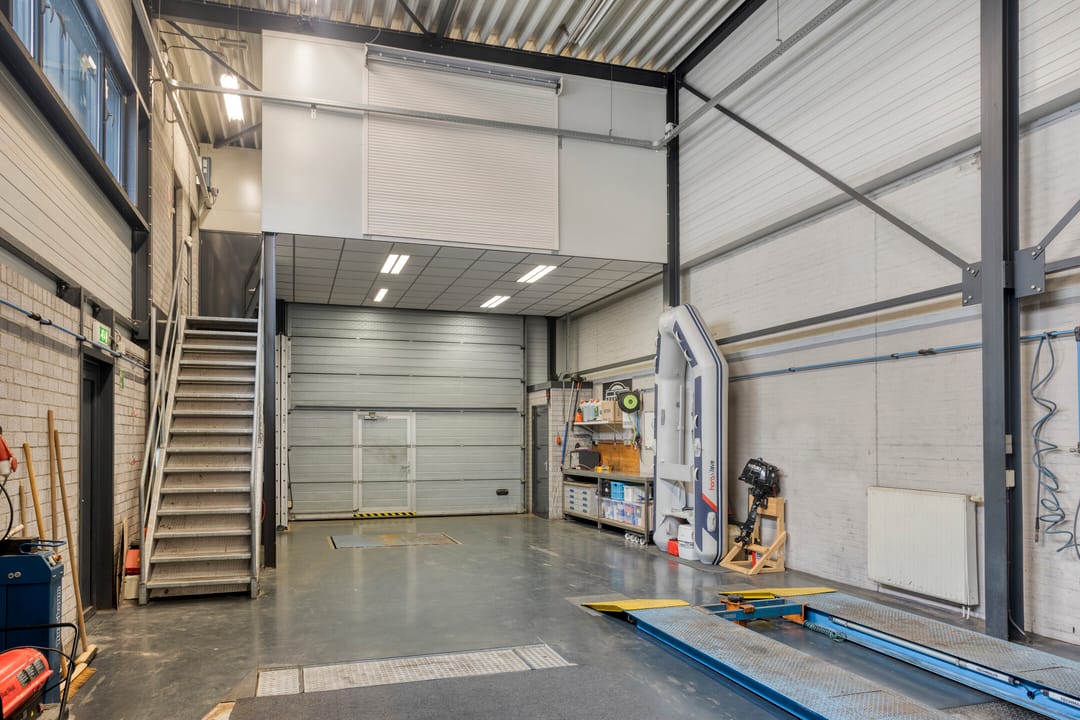 De bedrijfshal heeft een indrukwekkende hoogte van circa 6,5 meter en een overheaddeur met loopdeur (ca. 4,5 meter breed en ca. 4 meter vrije doorgangshoogte). Daarnaast is de hal ook bereikbaar via een separate zijdeur.