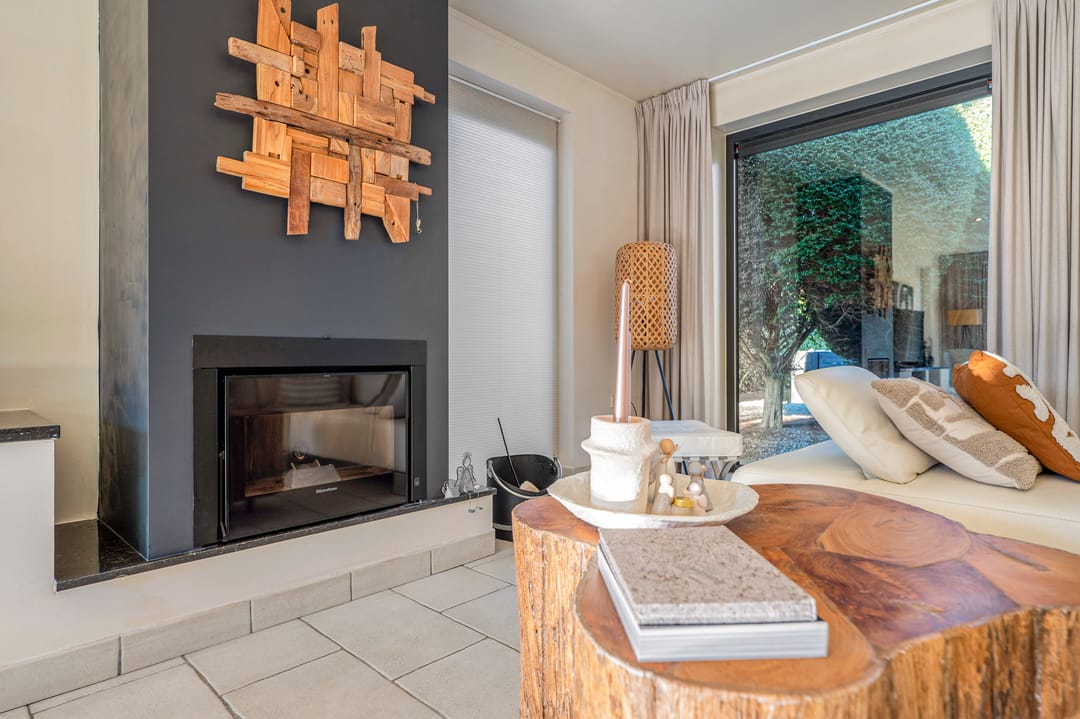 • Woonkamer voorzien van tegelvloer en pelletkachel