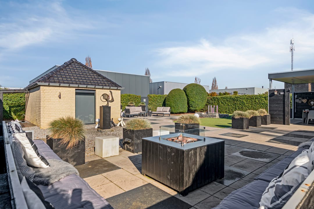 • Achterzijde grenst aan een industrieterrein met bedrijfsloods
