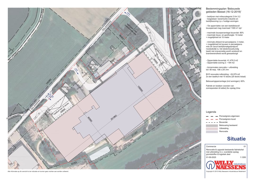 De locatie in Beesel is strategisch gelegen in Midden-Limburg en goed bereikbaar. Via de nabijgelegen N273 en de A73 zijn Venlo, Roermond en Duitsland uitstekend te bereiken. Dit maakt het terrein ideaal voor bedrijven die actief zijn in logistiek, distributie of productie. Het bedrijventerrein zelf is ruim opgezet en biedt veel mogelijkheden voor groei en maatwerk.