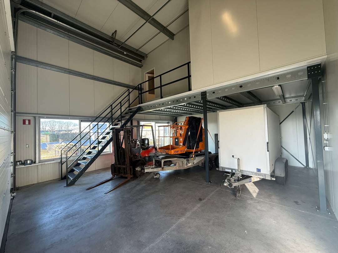 Begane grond: Bedrijfsruimte met grote roldeur aan de achterkant. De bedrijfsruimte in twee delen verdeeld. Een klein deel is gelegen op de inbouwkantoorruimte en circa 3 meter hoog. Het grootste gedeelte van de bedrijfsruimte is ruim 6 meter hoog. De bedrijfsruimte kent een goede daglichttoetreding. In de bedrijfsruimte bevinden zich goede elektriciteitsaansluitingen, ruim voldoende ramen, verwarming, 2 toiletten en een pantry.
