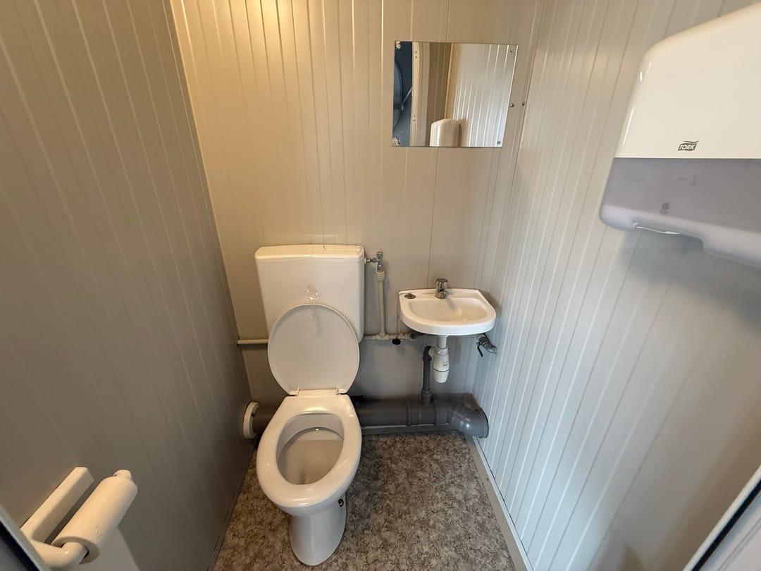 - Overheaddeuren, krachtstroom, betonvloer, heater, toilet, pantry en te openen ramen