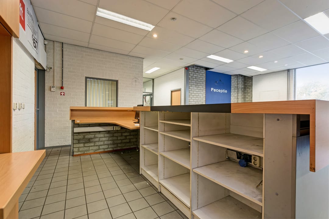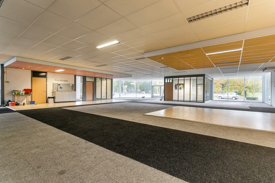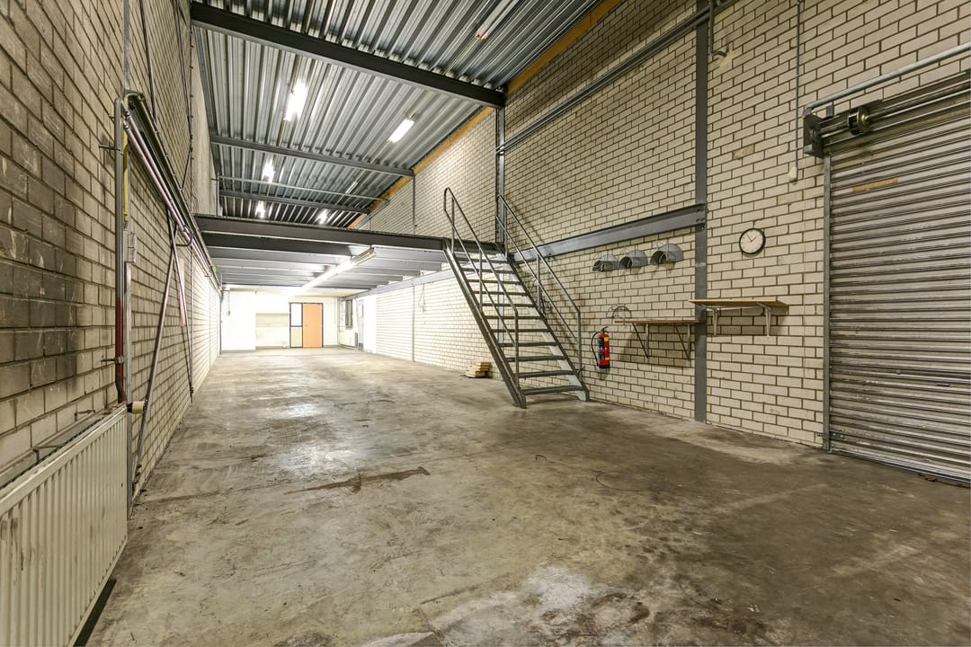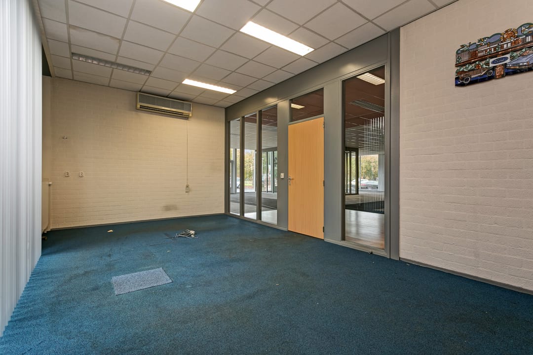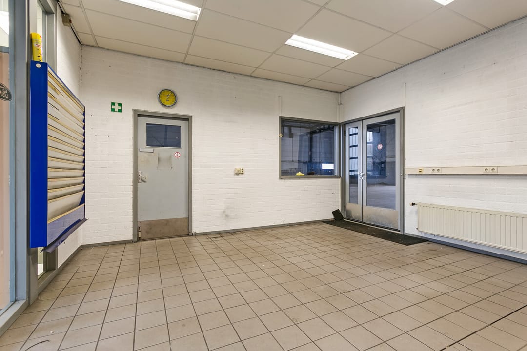 Entree, showroom met vijf kantoorruimtes, kantine en sanitaire ruimte. Aan de achterzijde bevindt zich een ruim magazijn met werkplaats, voorzien van kleedruimte met wastafels en toiletten.