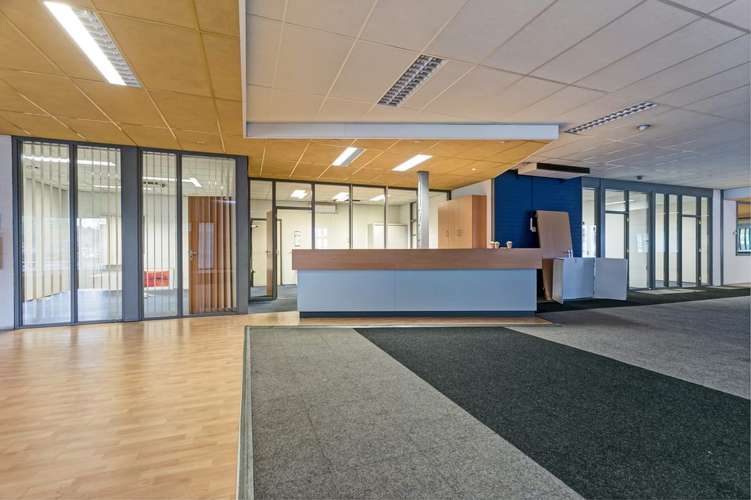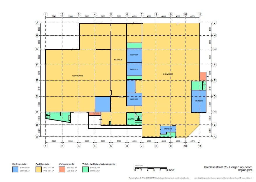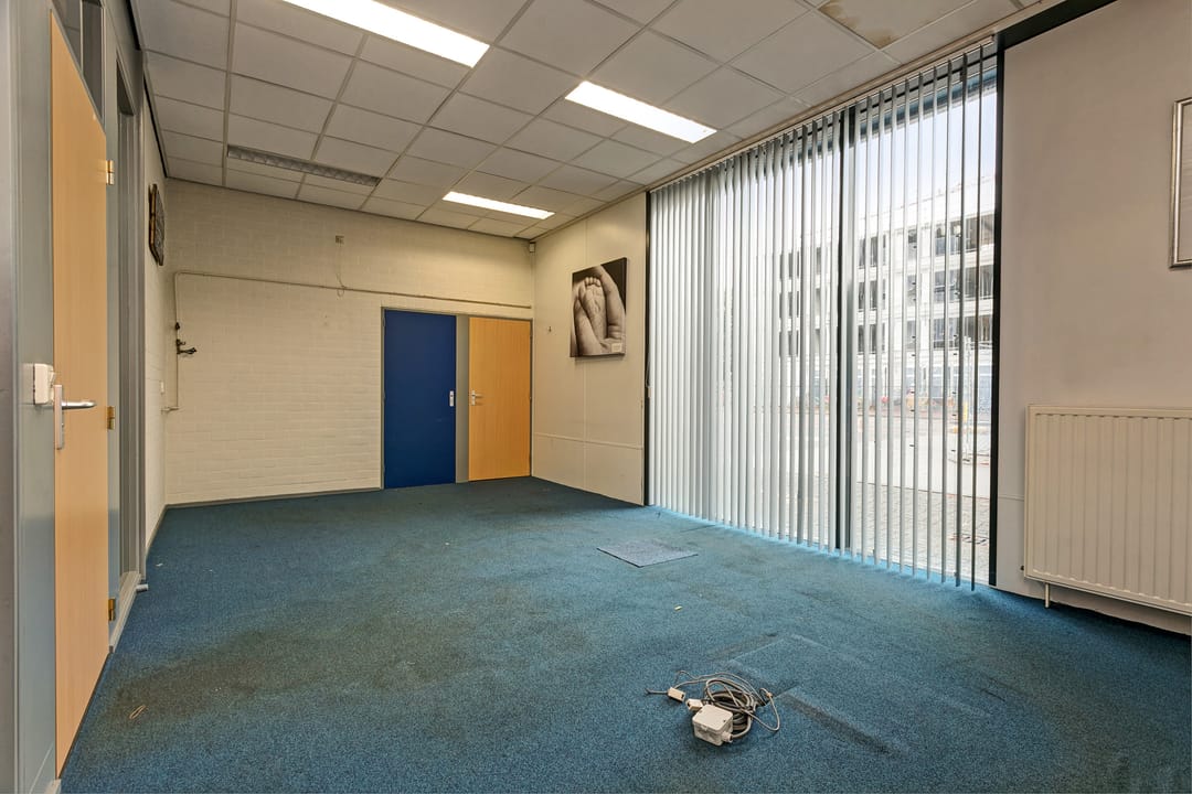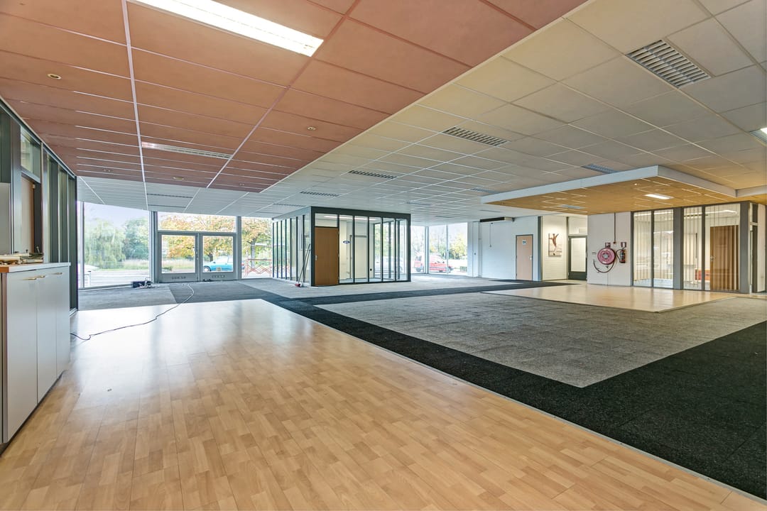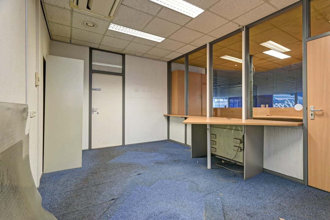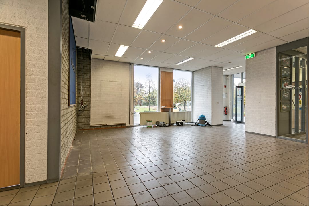 Entree, showroom met vijf kantoorruimtes, kantine en sanitaire ruimte. Aan de achterzijde bevindt zich een ruim magazijn met werkplaats, voorzien van kleedruimte met wastafels en toiletten.