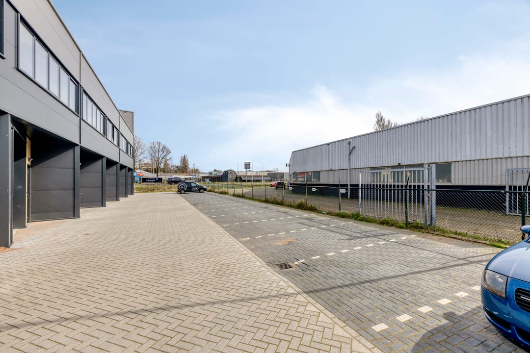 Daarnaast is de unit voorzien van glasvezelaansluiting, krachtstroom, een elektrische overheaddeur (doorrijhoogte ca. 3,5 m), een toiletruimte, een kitchenette met spoelbak, elektrapunten en verlichting op beide verdiepingen, evenals een vaste trap naar de eerste verdieping. Tevens behoren twee eigen parkeerplaatsen tot het gehuurde. De aansluitingen voor het realiseren van airconditioning en een boiler voor warm water zijn reeds voorbereid.