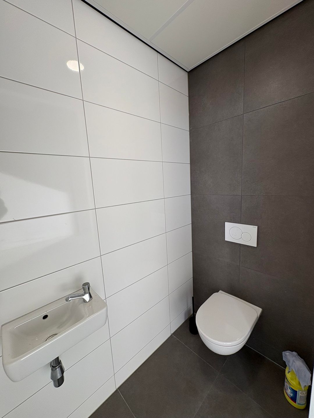 – betegelde toiletruimte met wandcloset en fonteintje;