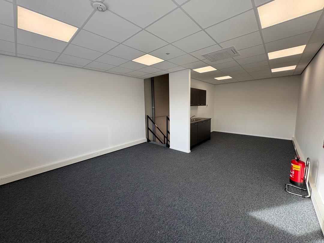 De bedrijfsunit is o.a. geheel voorzien van ledverlichting, een elektrisch bedienbare overheaddeur (3,25m hoog x 3,60m breed) en een separate loopdeur, een glad afgewerkte betonvloer met een max. vloerbelasting van 1.500 kg/m², een luxe betegelde toiletruimte en een net afgewerkte kantoorruimte met de benodigde voorzieningen. De vrije hoogte in de bedrijfsruimte bedraagt ca. 6,50 meter onder de staalconstructie en 2,95 meter onder de entresolvloer.