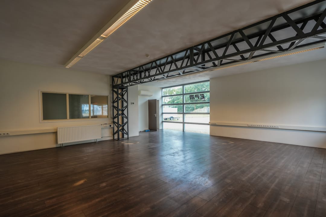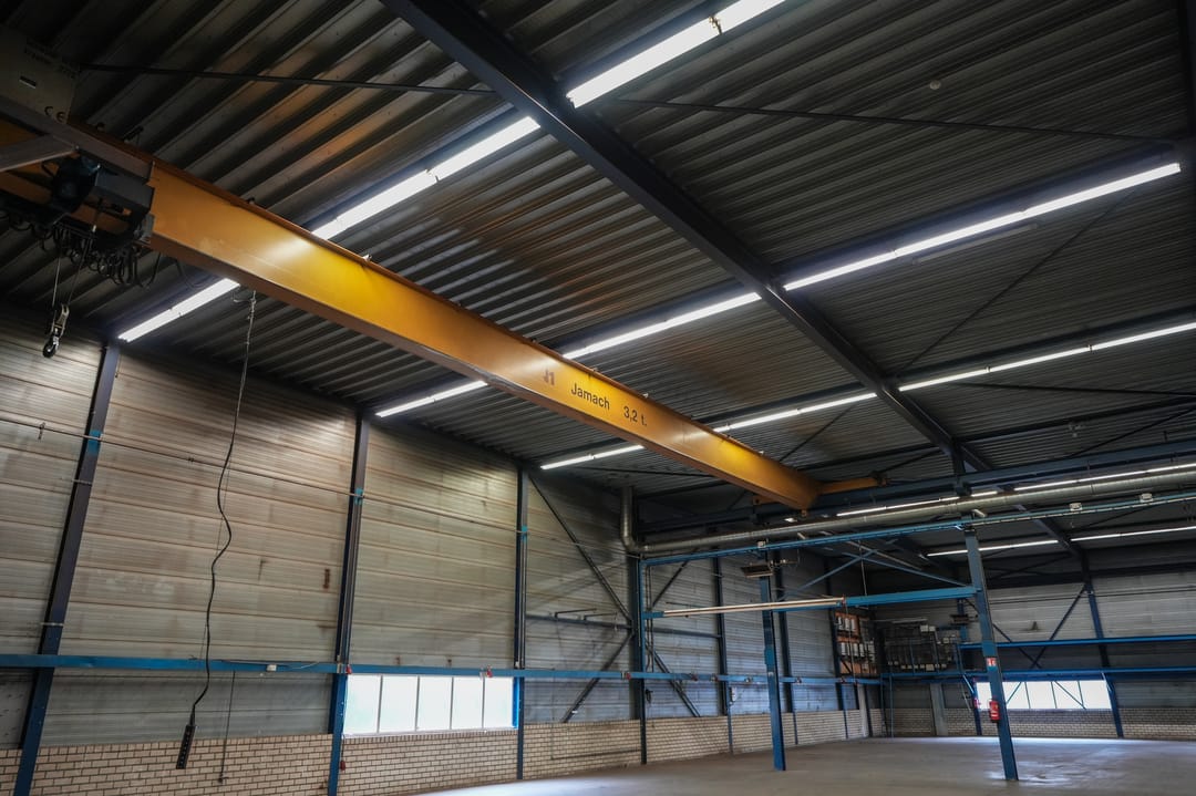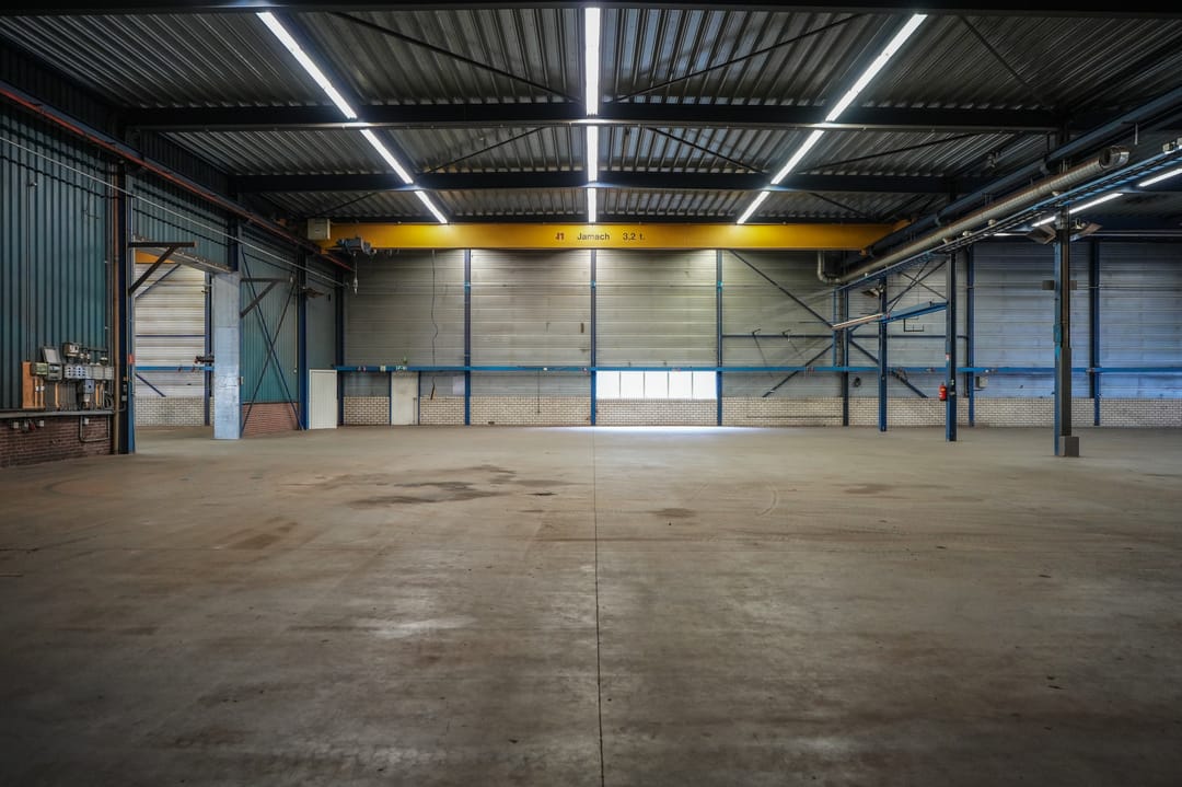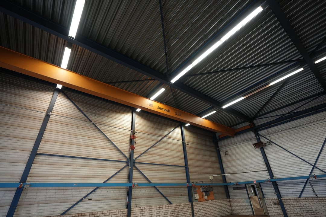 - Lichtstraten, overheaddeuren, krachtstroom, betonvloer, heater, toilet, pantry, inbouwarmaturen en te openen ramen