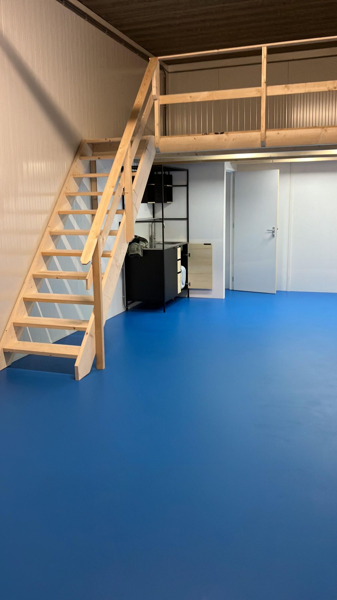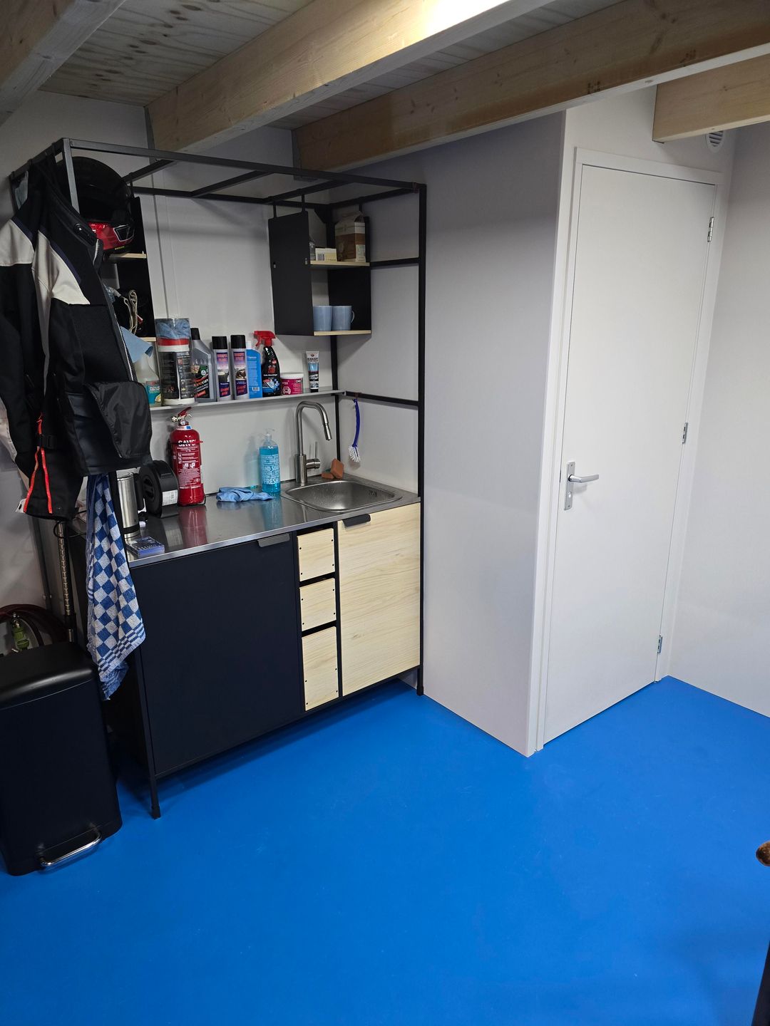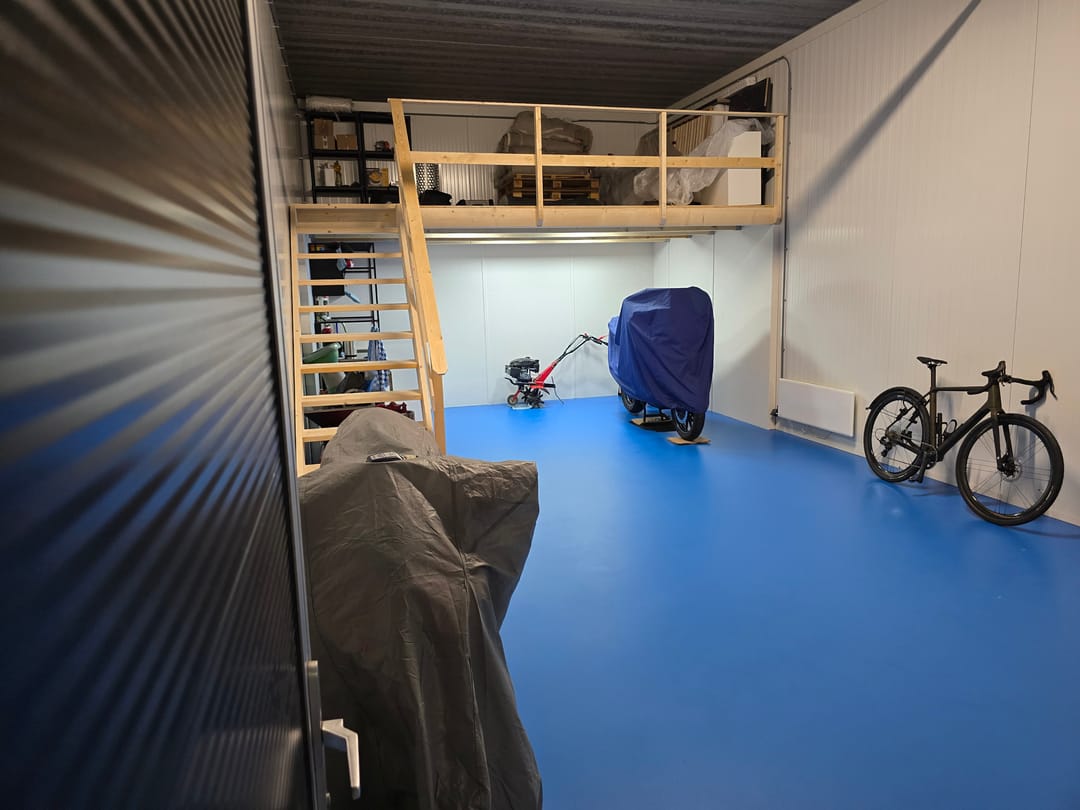 De unit is uitgerust met een eigen toilet en keukenblok met boiler, een strakke gietvloer en een houten entresol van circa 3 meter diep. Ideaal voor extra opslag of als werkplek. Ook is de unit voorzien van verwarming met elektrische radiatoren.