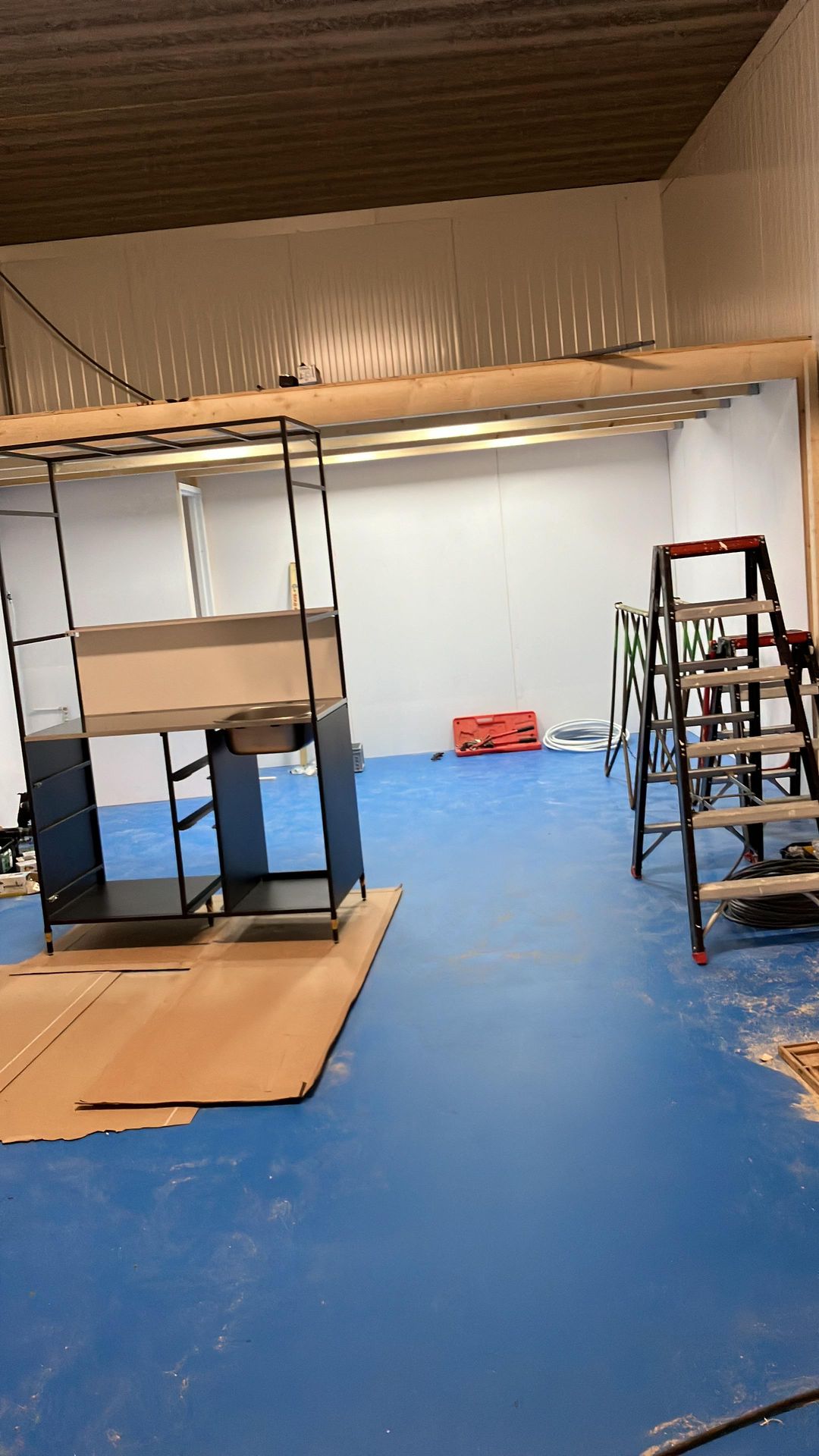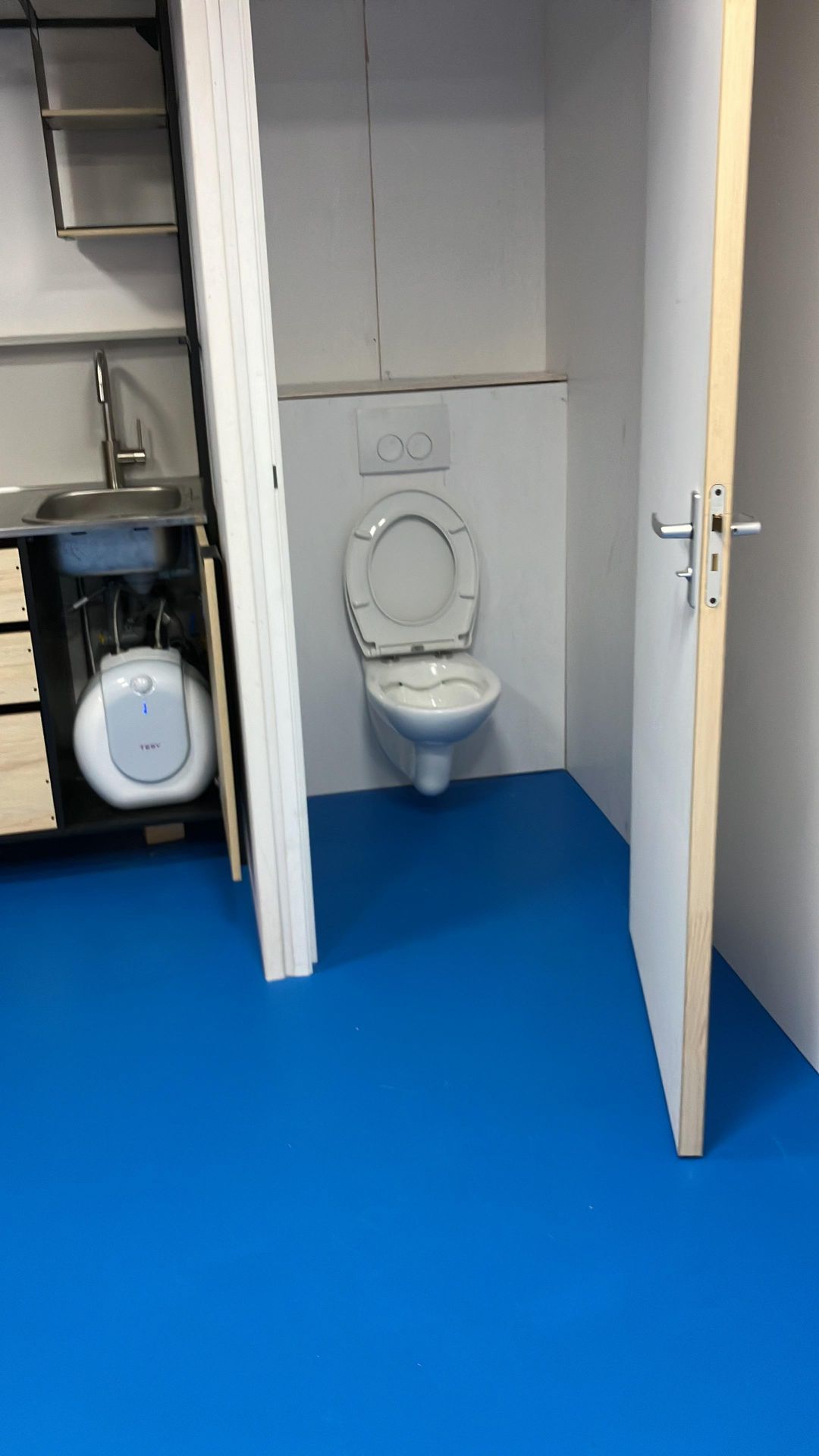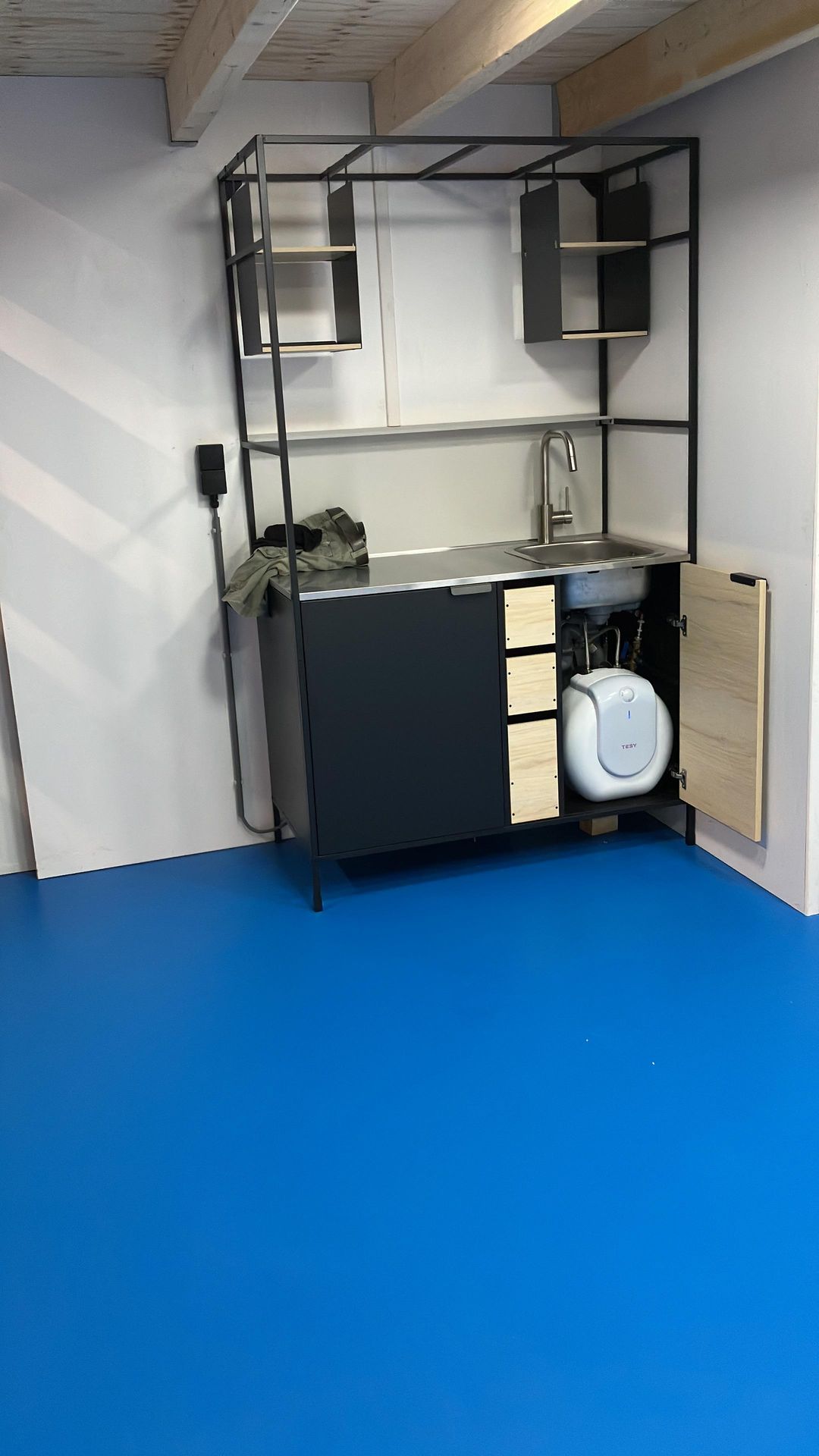 De unit is uitgerust met een eigen toilet en keukenblok met boiler, een strakke gietvloer en een houten entresol van circa 3 meter diep. Ideaal voor extra opslag of als werkplek. Ook is de unit voorzien van verwarming met elektrische radiatoren.