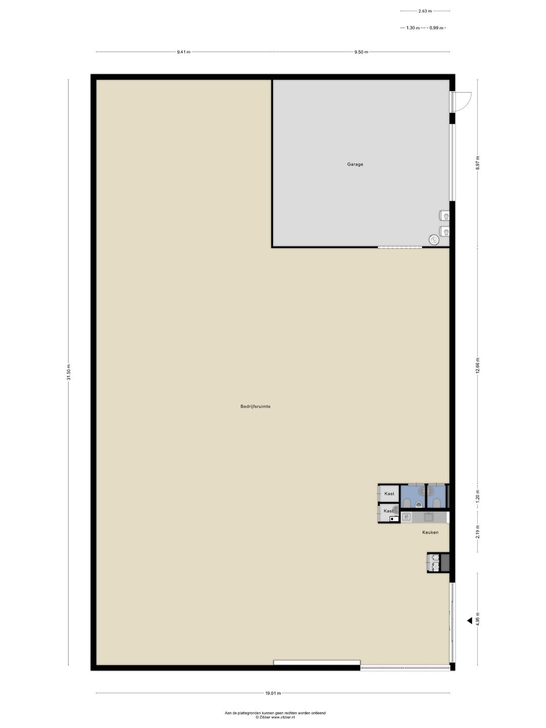 - Onderheide betonvloer met een maximale vloerbelasting van ca. 1.500 kg/m²;
