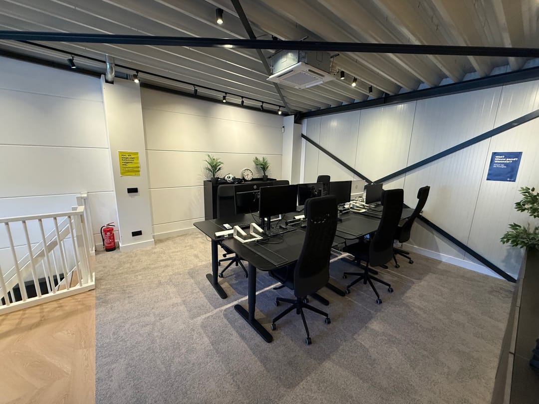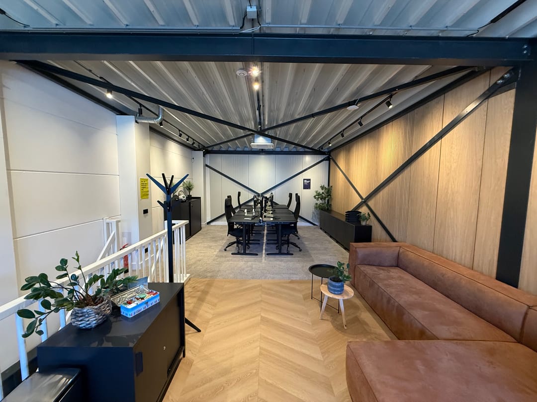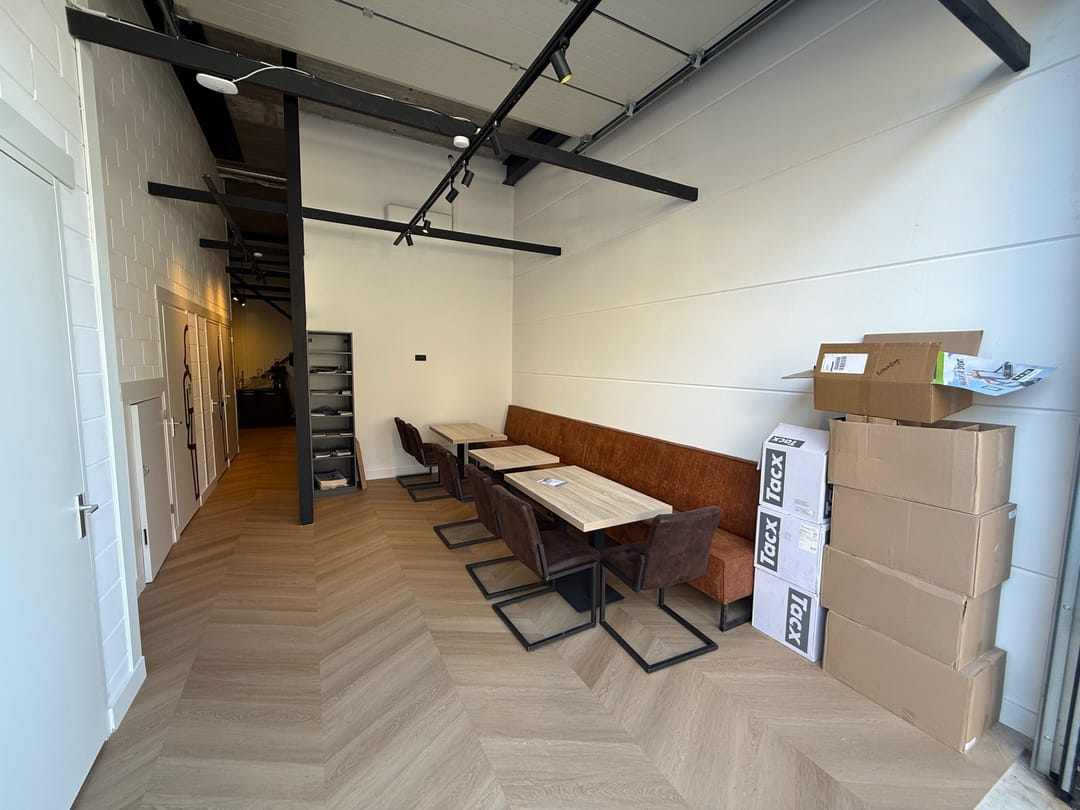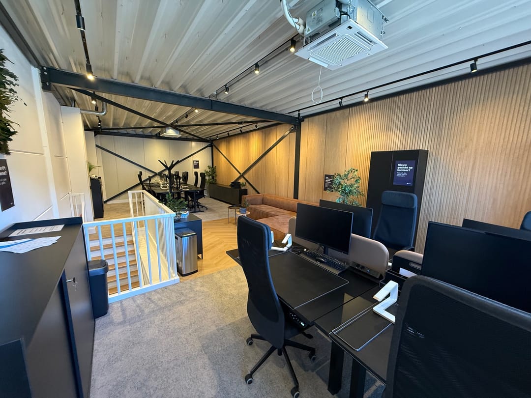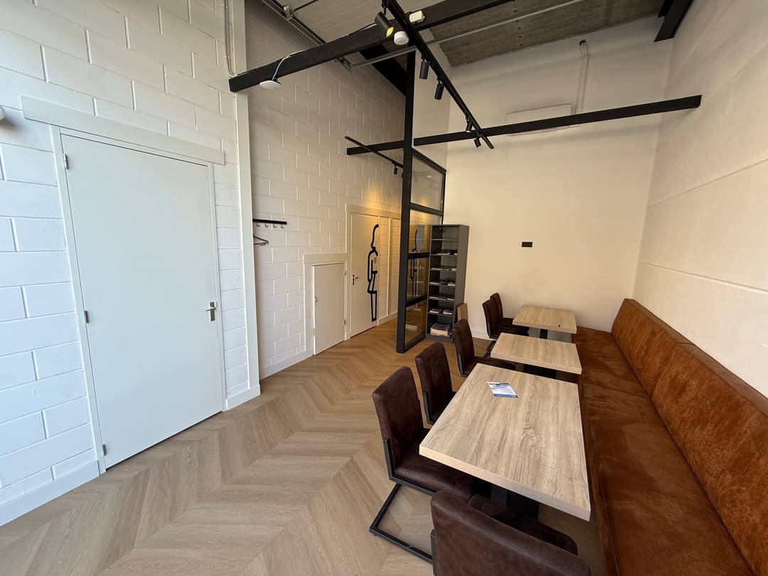 De kantoorverdieping heeft een eigen entree en is ingericht met duurzame materialen en voorzieningen. Zo is de ruimte uitgerust met een moderne tv met vergadersysteem, twee airco-units, hoogwaardige wandafwerking en een glasvezelaansluiting. Hierdoor is de verdieping direct klaar voor professioneel kantoor- en vergadervertrekken.
