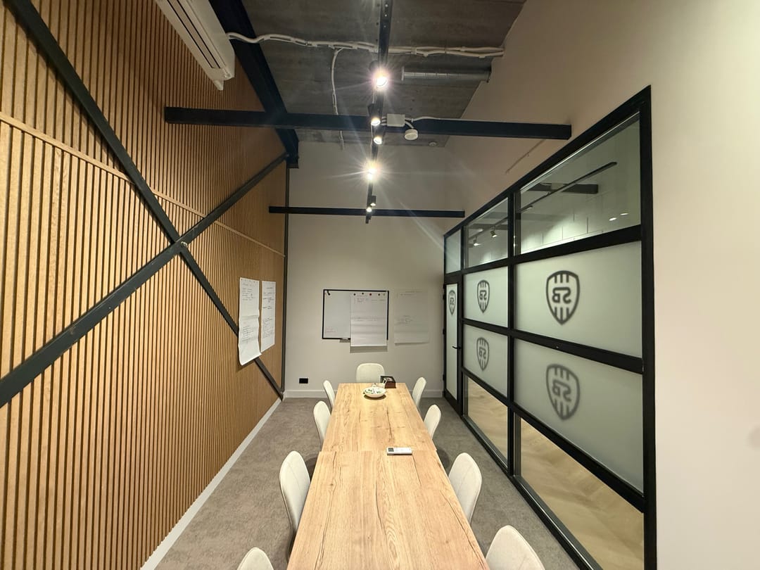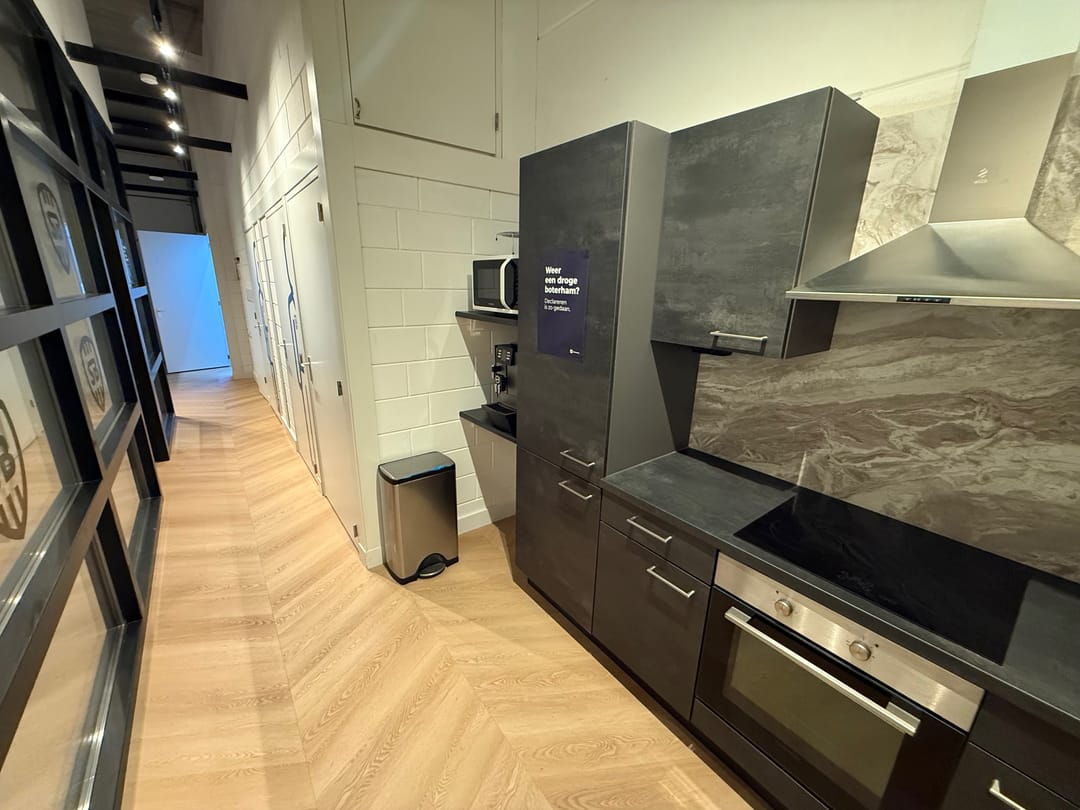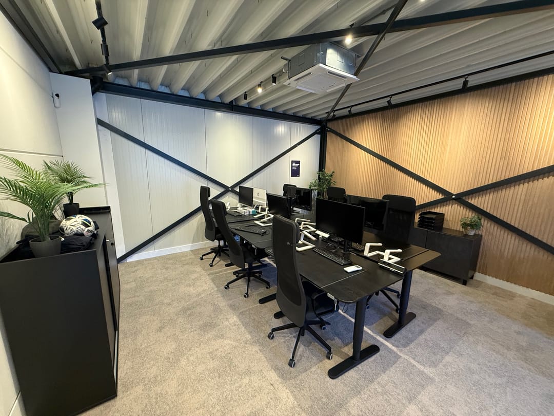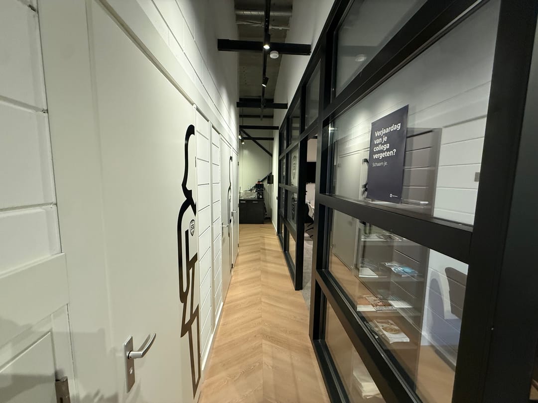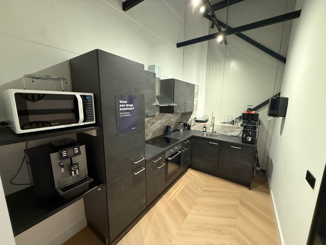 De kantoorverdieping heeft een eigen entree en is ingericht met duurzame materialen en voorzieningen. Zo is de ruimte uitgerust met een moderne tv met vergadersysteem, twee airco-units, hoogwaardige wandafwerking en een glasvezelaansluiting. Hierdoor is de verdieping direct klaar voor professioneel kantoor- en vergadervertrekken.