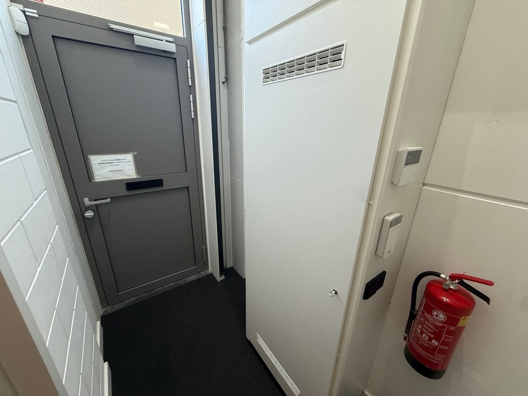 Het object beschikt over een dubbele entree, bestaande uit een loopdeur en een separate overheaddeur, waarmee het object zowel functioneel als representatief te betreden is. Dankzij de aanwezige glazen scheidingswanden, hoogwaardige vloerafwerking (beton, deels voorzien van pvc/vloerbedekking) en het alarmsysteem is de begane grond direct inzetbaar voor uiteenlopende bedrijfsactiviteiten.