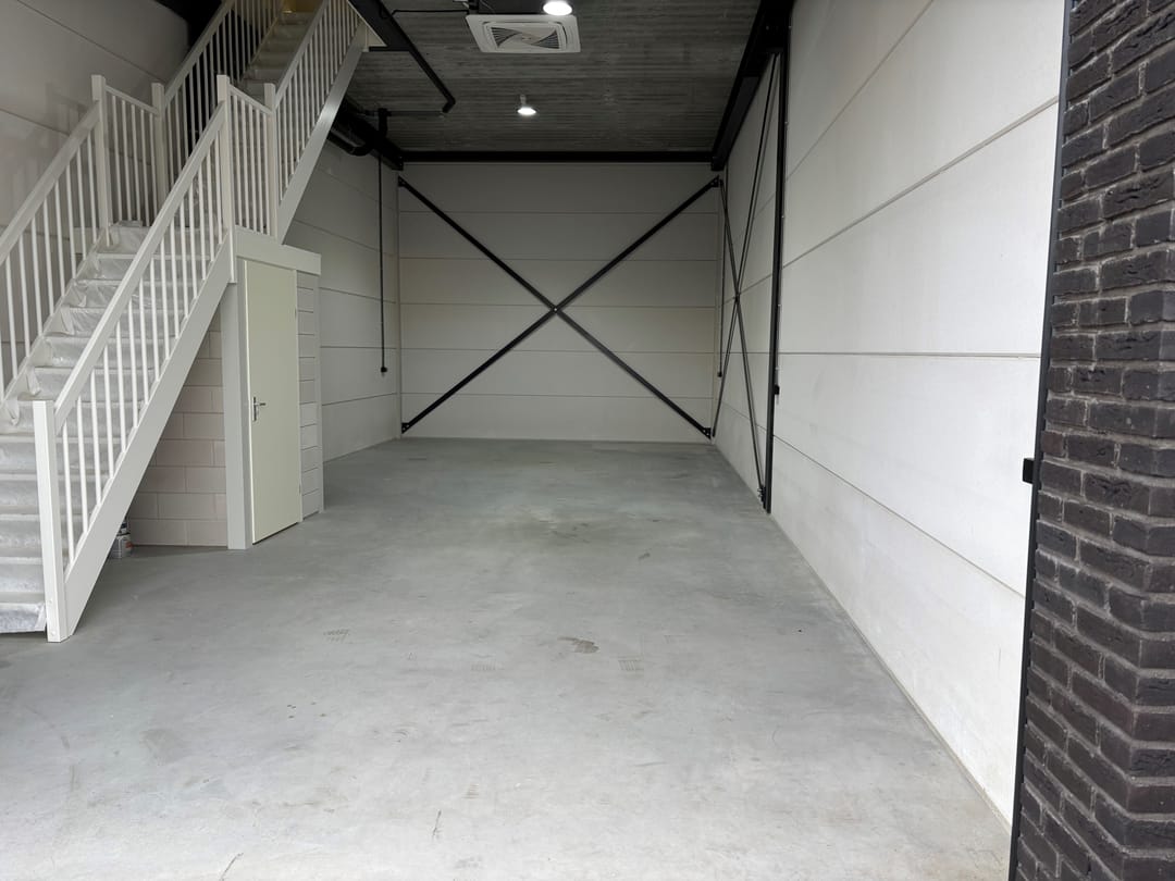 Bedrijfsruimte op de benedenetage met een bruto vloeroppervlakte van 70 m2, met elektrische overheaddeur, verwarming- en koeling. Geschikt voor bijv.magazijn, showroom, fietsenwerkplaats, elektricien (geen timmerbedrijf) of opslag van materialen of bijv. te gebruiken als autostalling. Gelegen op een kleinschalig bedrijven terrein met een actieve vereniging van eigenaren.