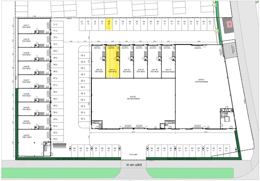 • Parkeren; 1 parkeerplaats voor de deur waarbij de toegangsdeur toegankelijk blijft.