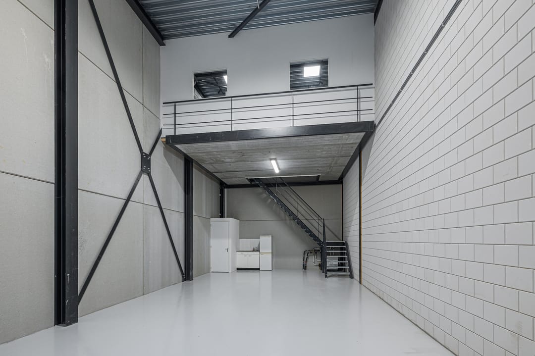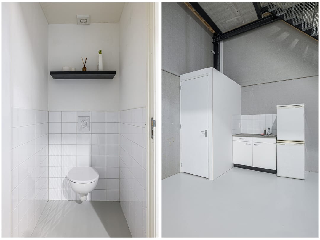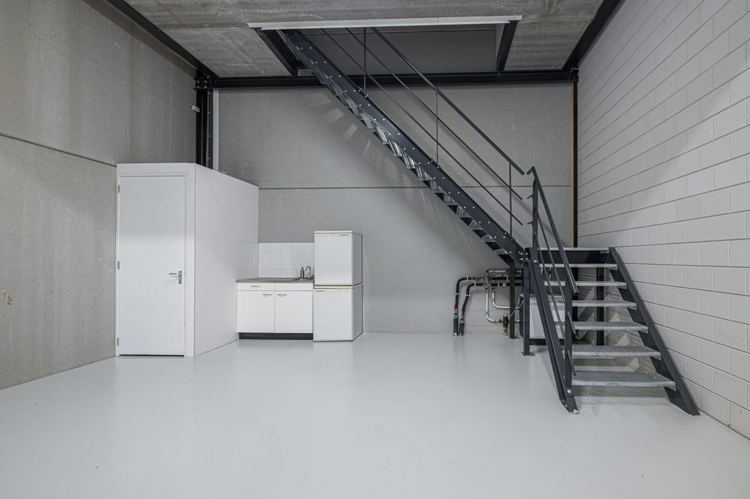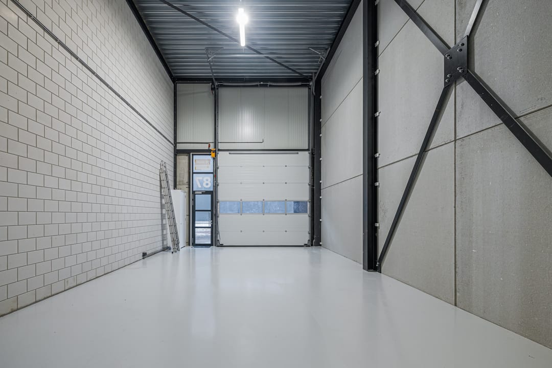 - Overheaddeuren, betonvloer, toilet, pantry en airconditioning
