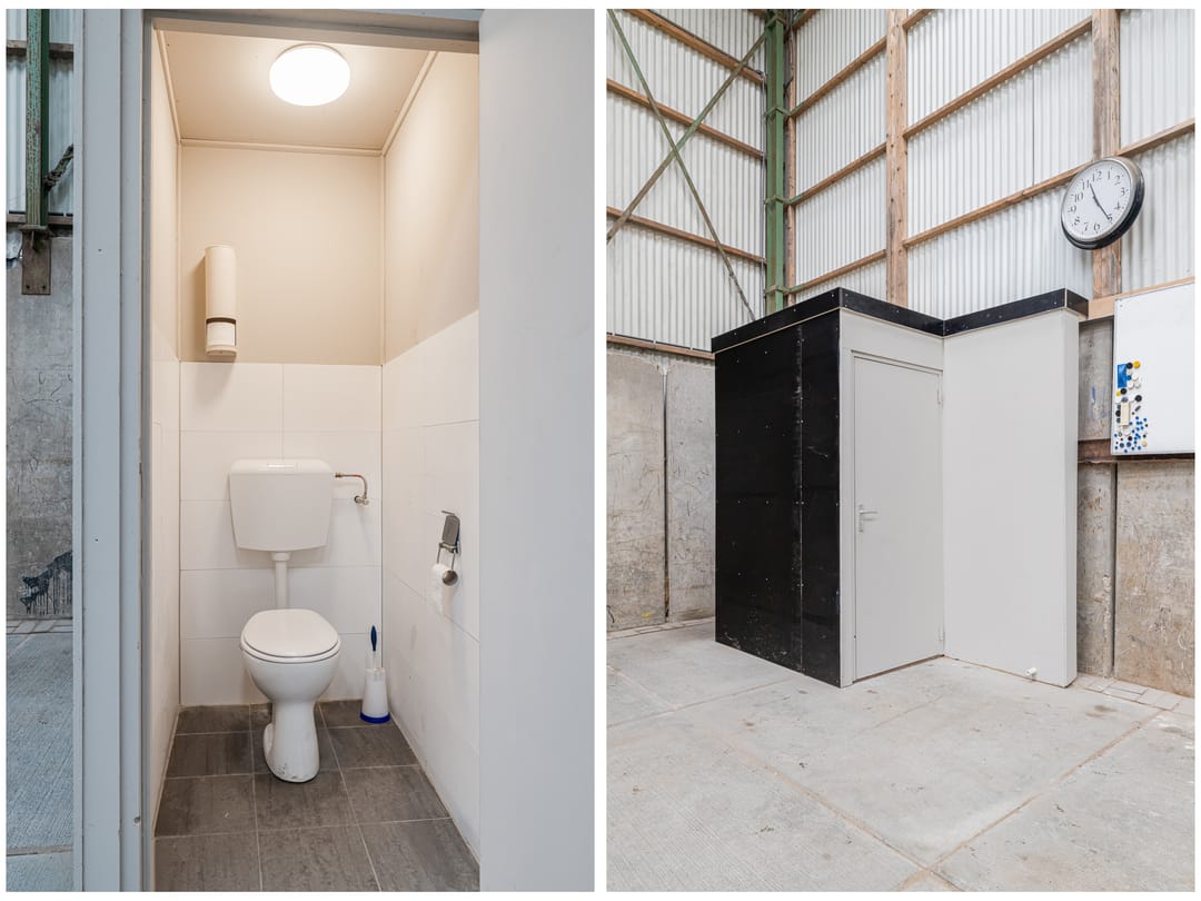 - Overheaddeuren, betonvloer en toilet