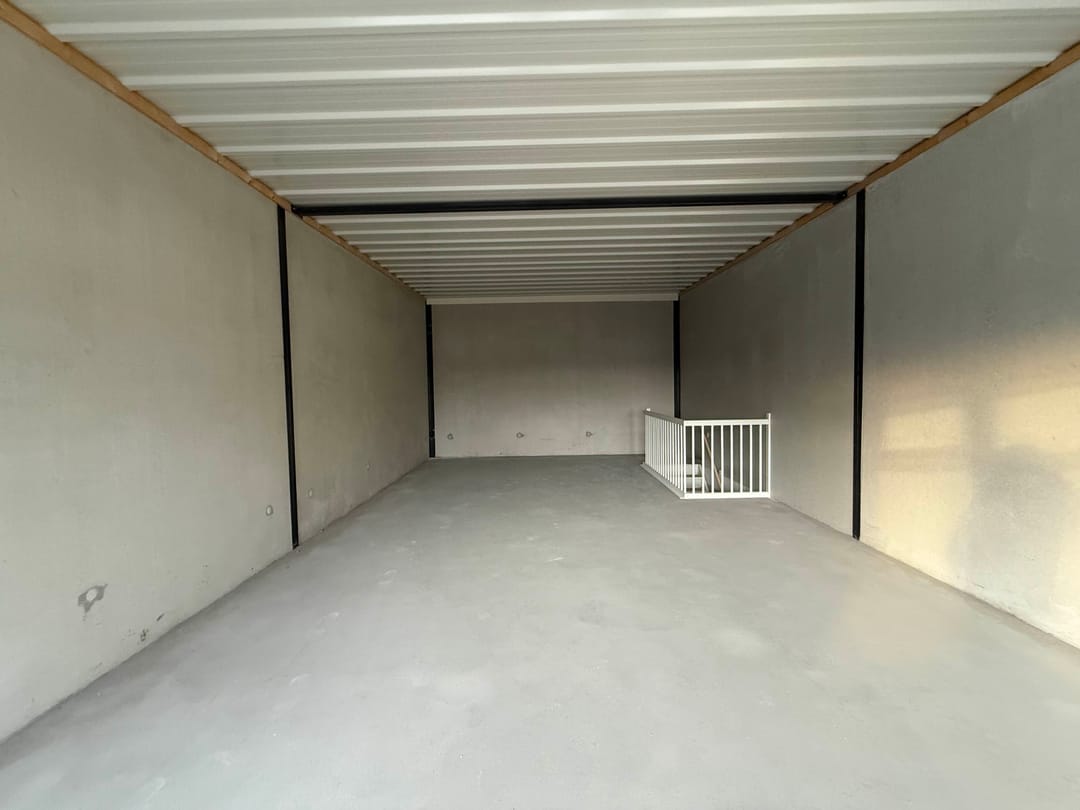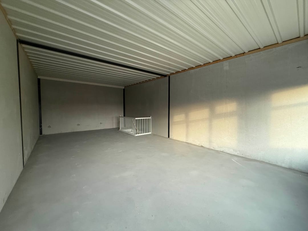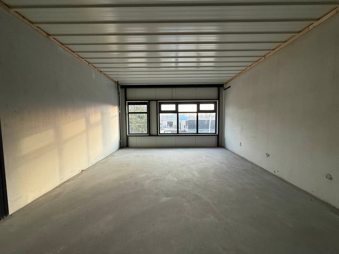 - Overheaddeuren, betonvloer en te openen ramen