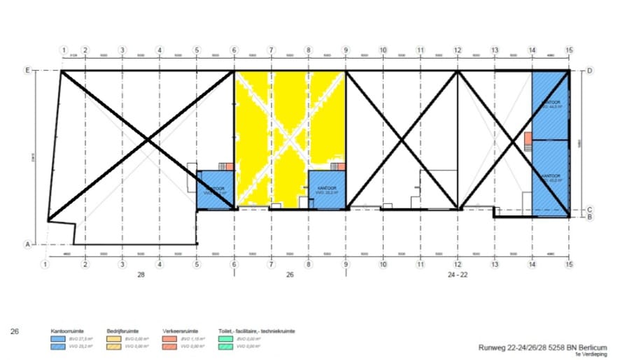 Het object betreft circa 253 m² bedrijfsruimte op de begane grond en circa 52 m² kantoorruimte verdeeld over 2 verdiepingen.