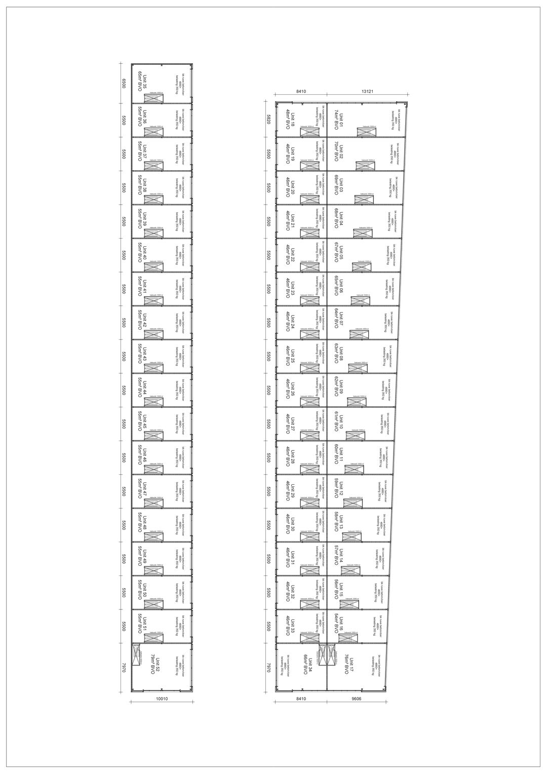• meterkast met aansluitingen voor water en elektra, unit wordt gasloos uitgevoerd