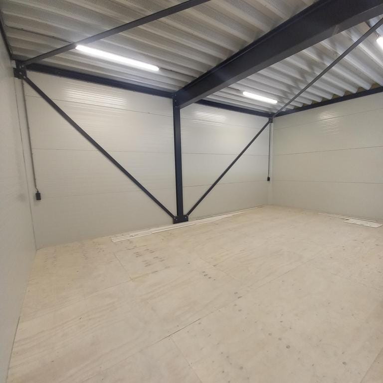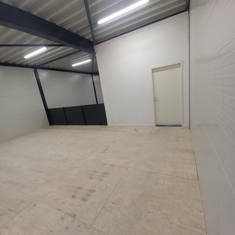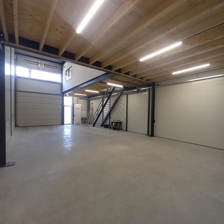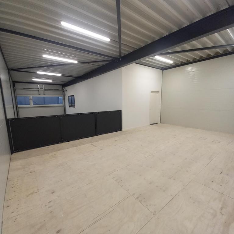 - Overheaddeuren, krachtstroom, betonvloer, toilet en pantry