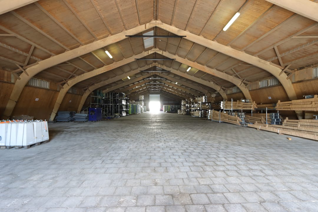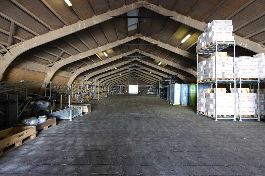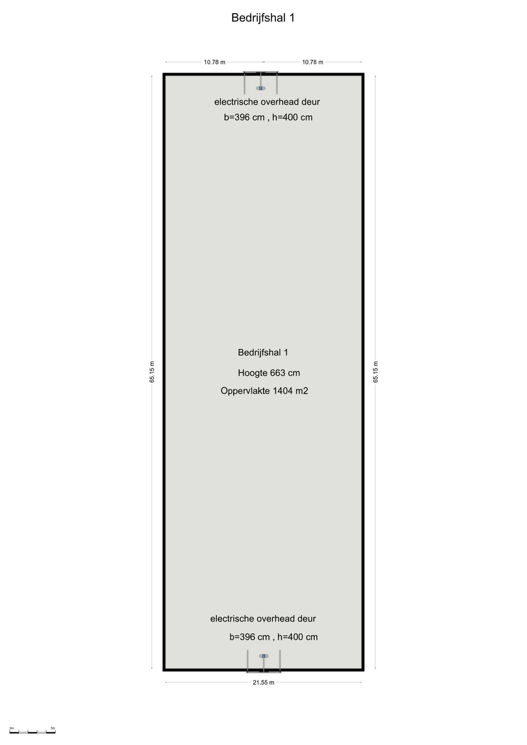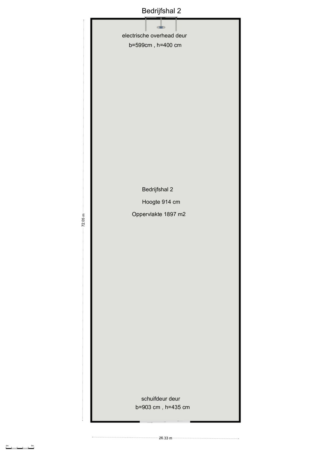 De grote (linker) hal is ca. 72 meter lang bij ca. 27 meter breed met een nokhoogte van ca. 9 meter. Toegang middels een elektrisch bedienbare overheaddeur van ca. 6 meter breed bij ca. 4 meter hoog aan de voorzijde en een schuifdeur van ca. 9 meter breed aan de achterzijde.