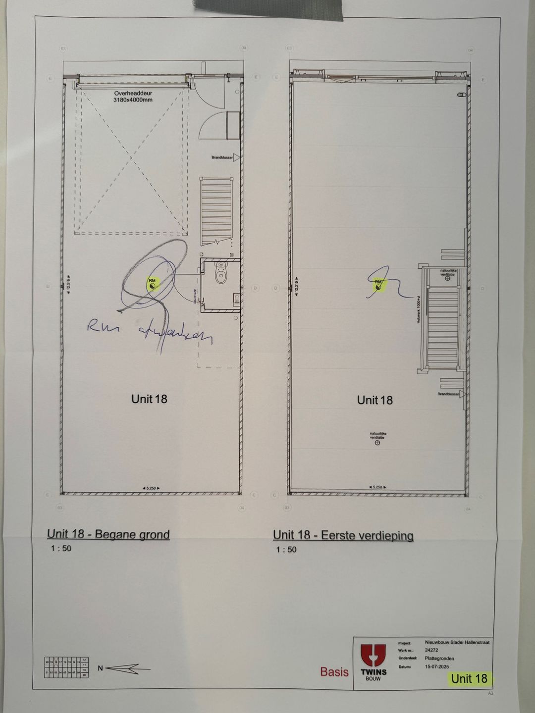 - Overheaddeuren, krachtstroom, betonvloer en toilet