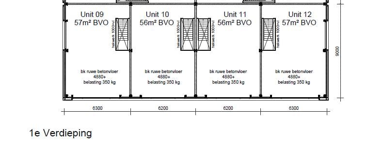 - Betonnen verdiepingsvloer (350 kg/m²)