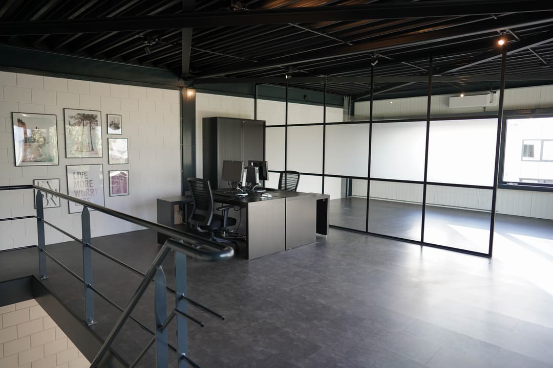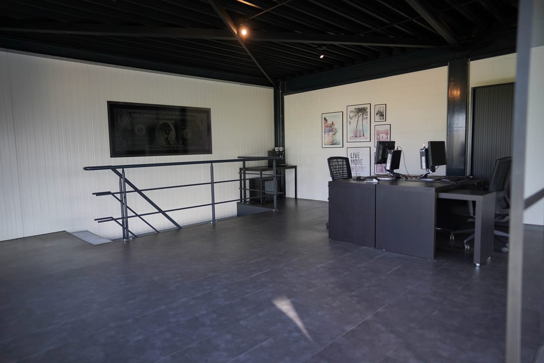 - Airconditioning, lichtstraten, overheaddeuren, betonvloer, toilet, pantry en te openen ramen