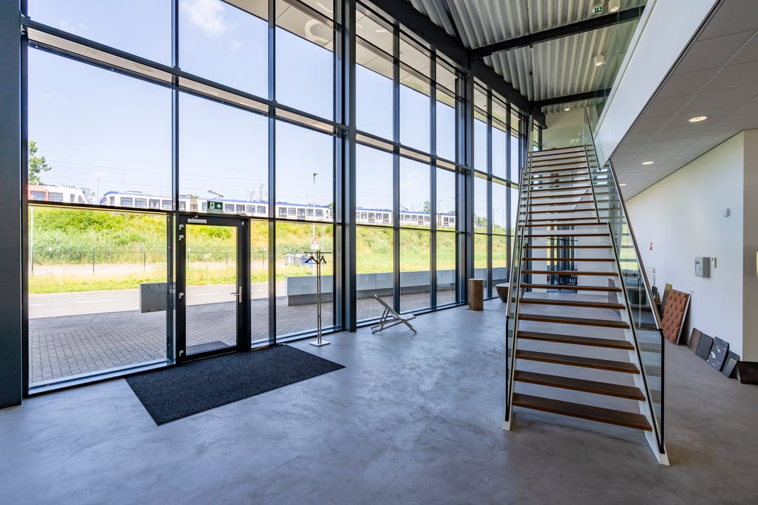 - vloerverwarming is in de bedrijfshal hoofdverwarming en in de kantoren op de begane grond bij verwarming;